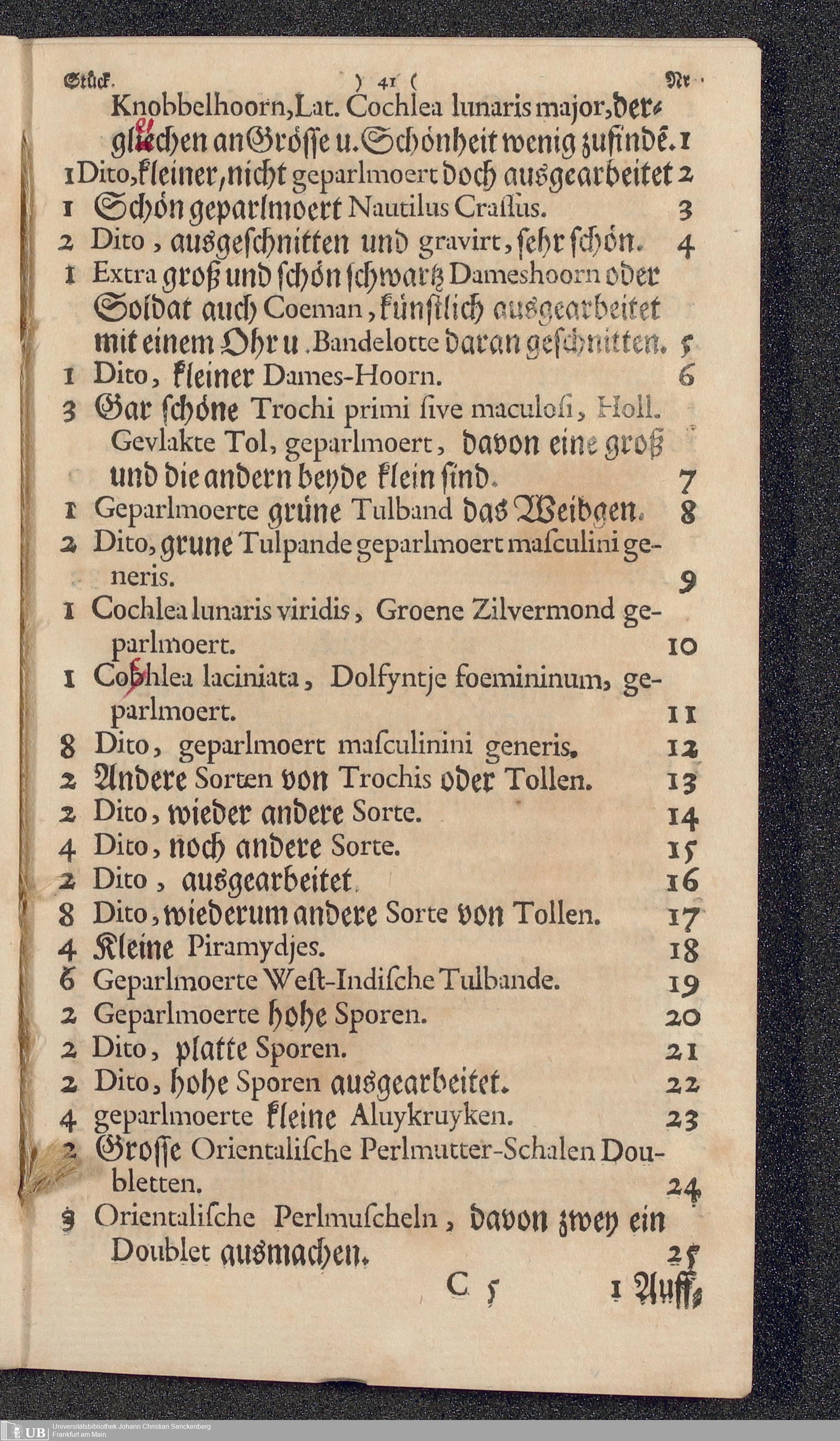 Na 31 Nachlass Johann Christian Senckenberg, 177 - Aufzeichnungen Senckenbergs über das Muschelkabinett Lavillettes (p. I.2.c.95)