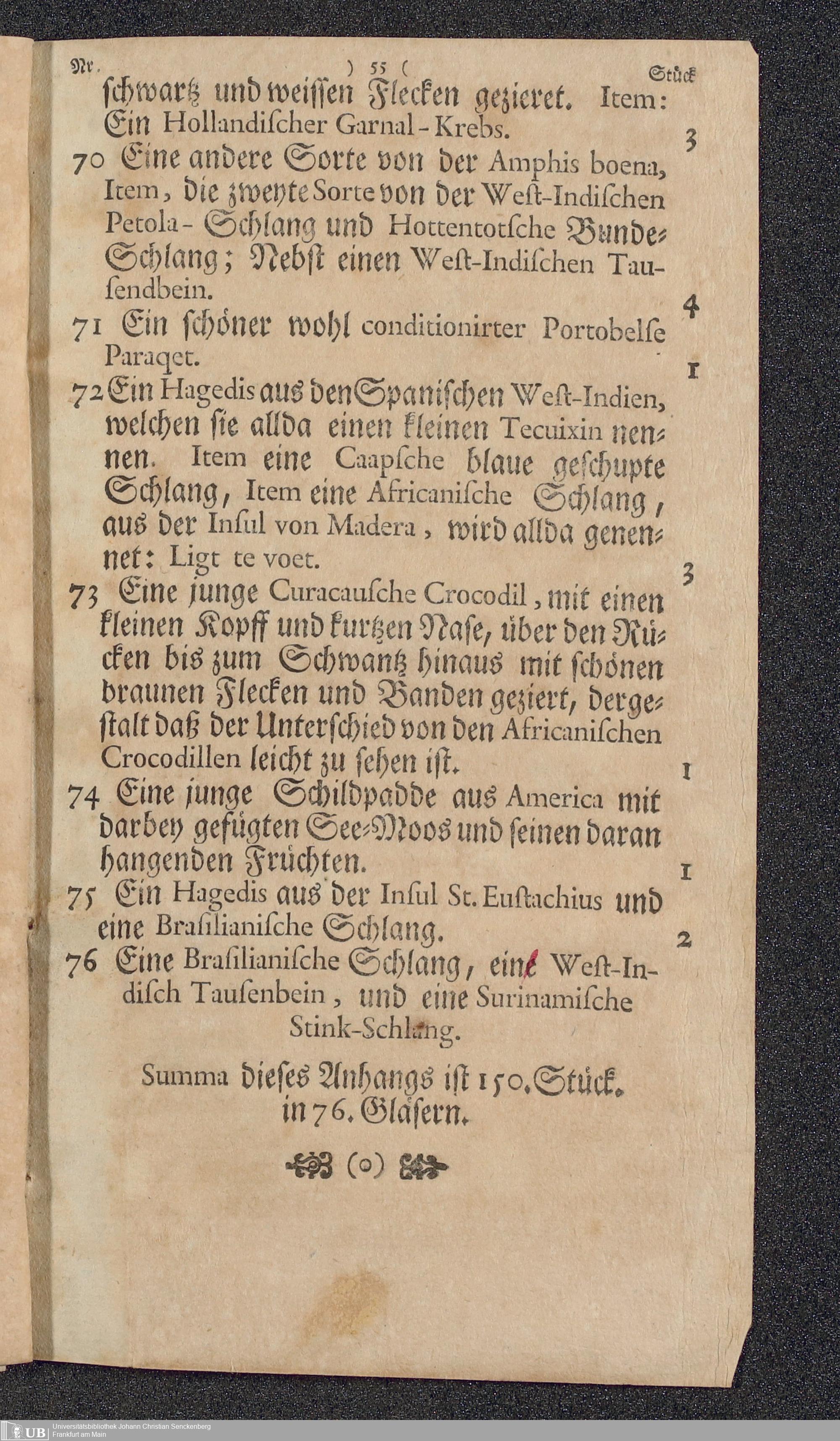 Na 31 Nachlass Johann Christian Senckenberg, 177 - Aufzeichnungen Senckenbergs über das Muschelkabinett Lavillettes (p. I.2.c.95)