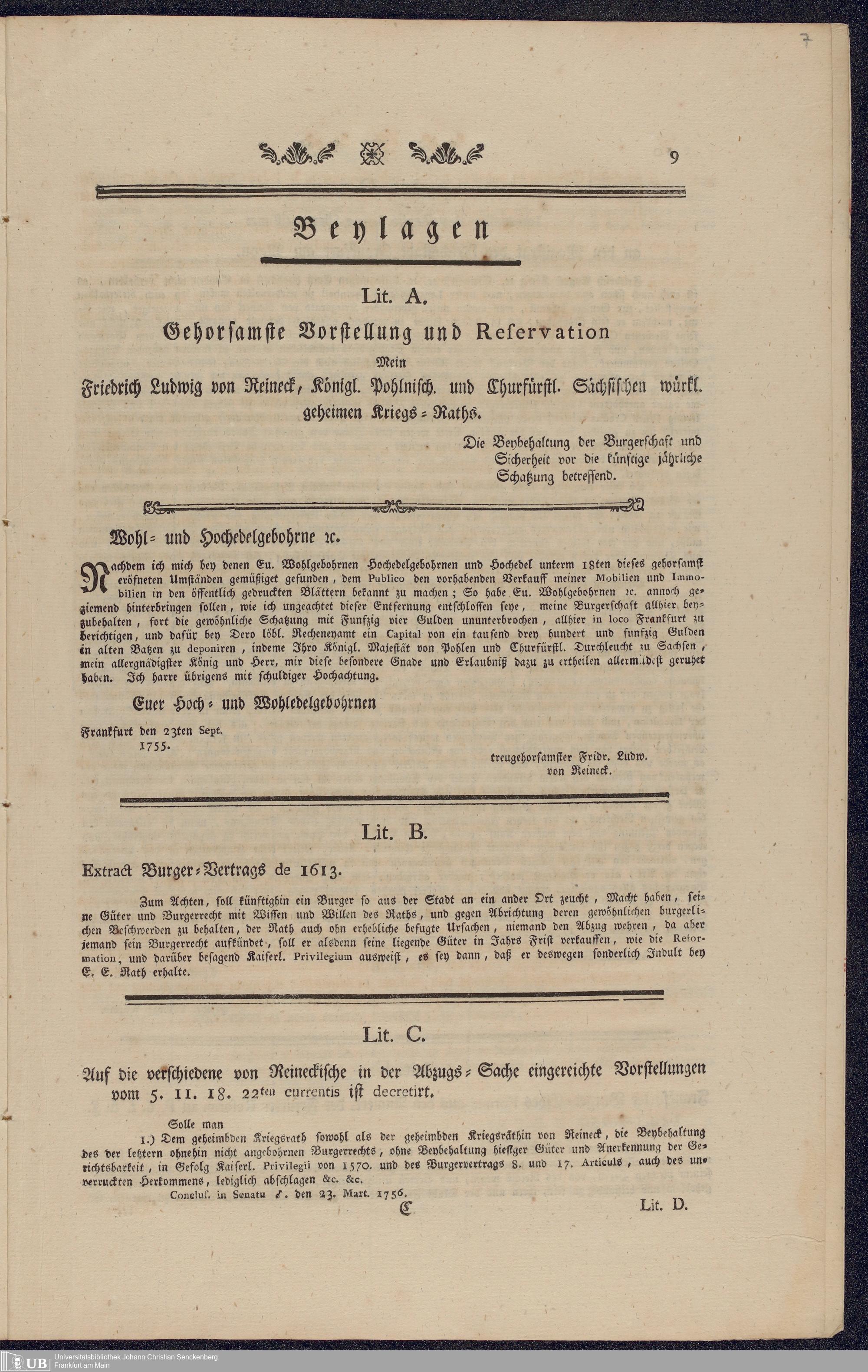 Na 31 Nachlass Johann Christian Senckenberg, 199 - Rechtsstreit zwischen von Reineck und dem Magistrat