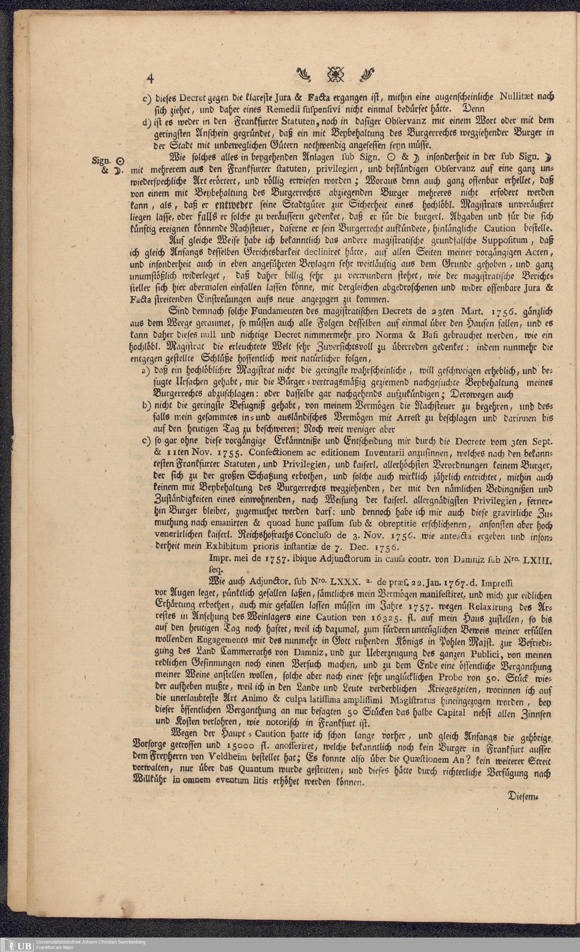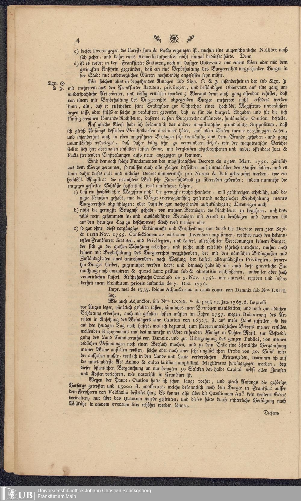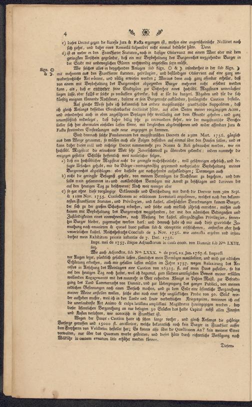 Na 31 Nachlass Johann Christian Senckenberg, 199 - Rechtsstreit zwischen von Reineck und dem Magistrat
