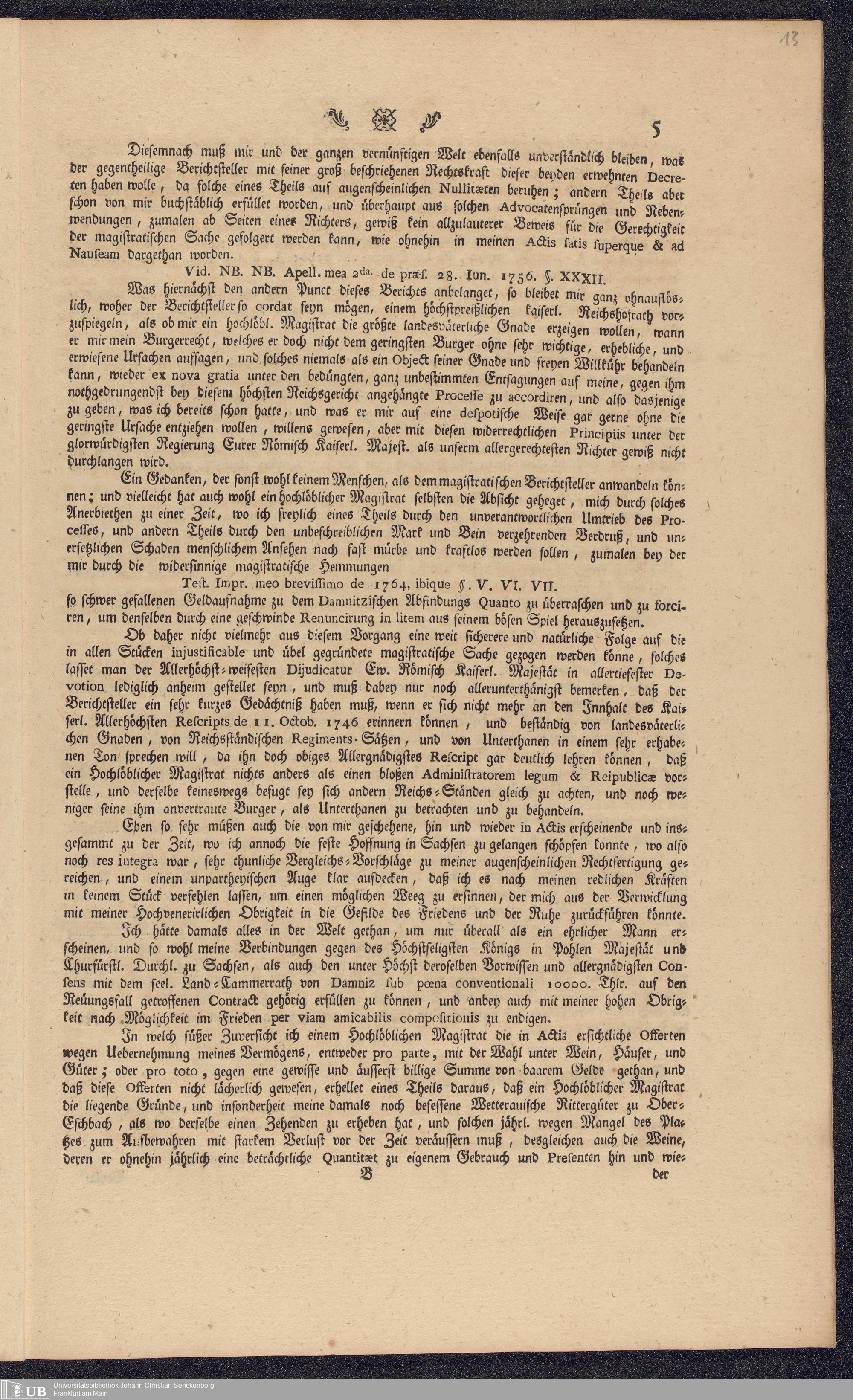 Na 31 Nachlass Johann Christian Senckenberg, 199 - Rechtsstreit zwischen von Reineck und dem Magistrat