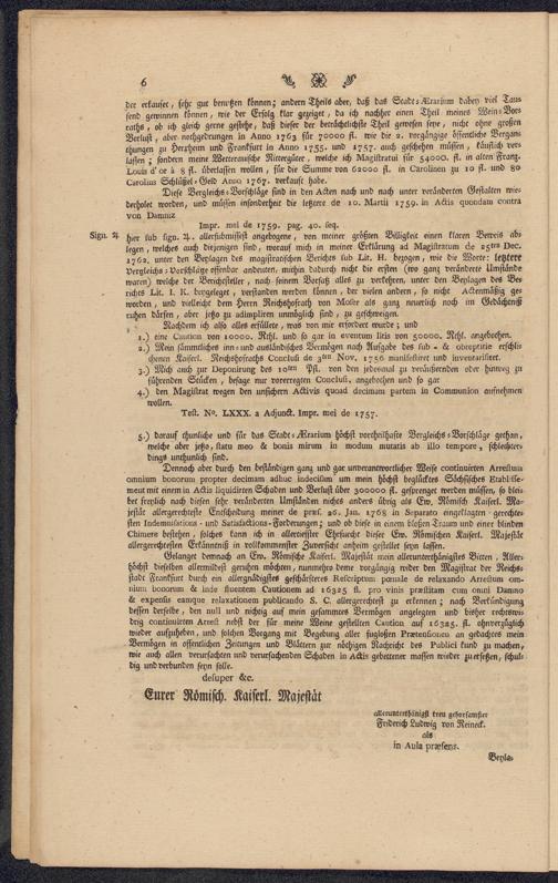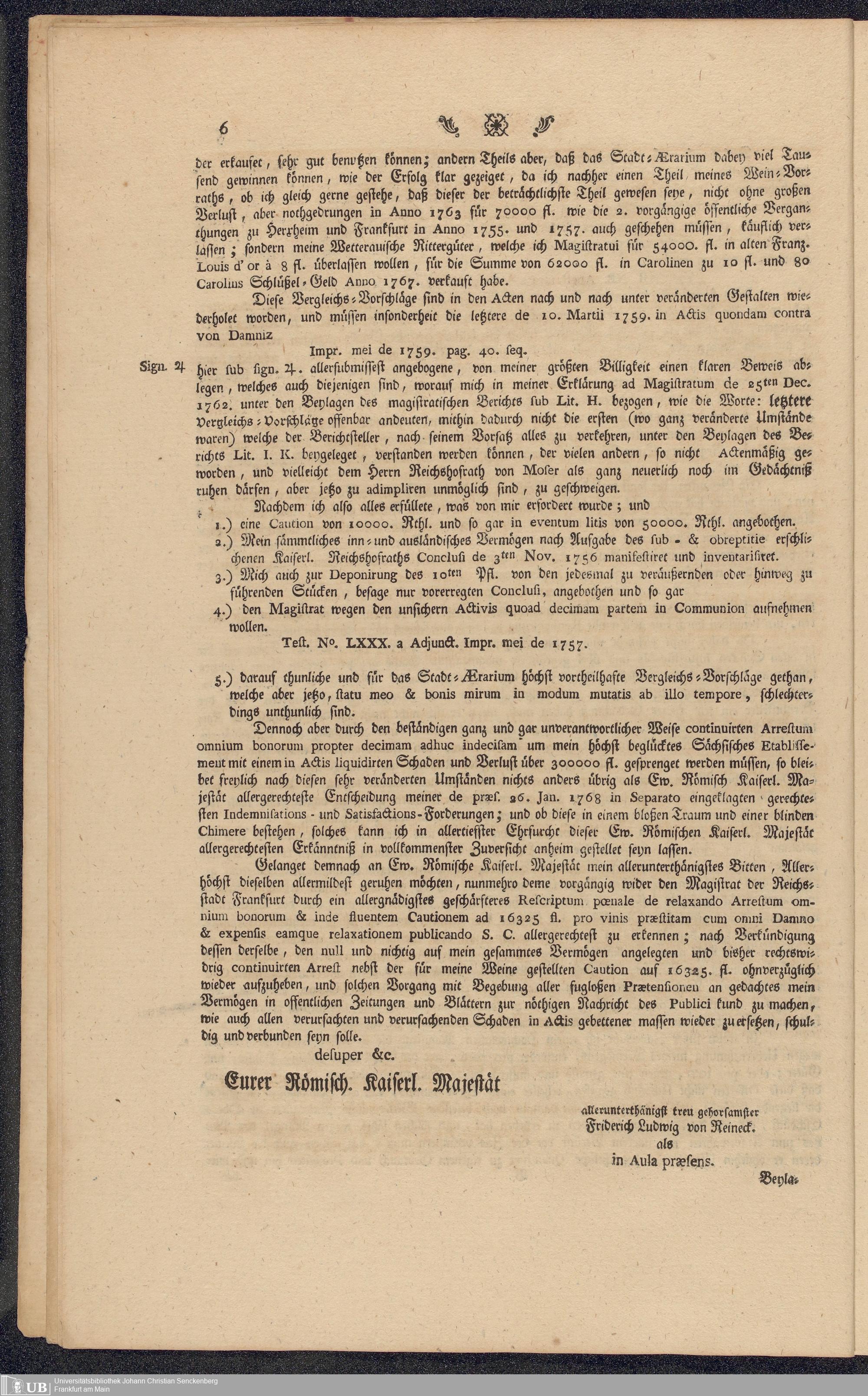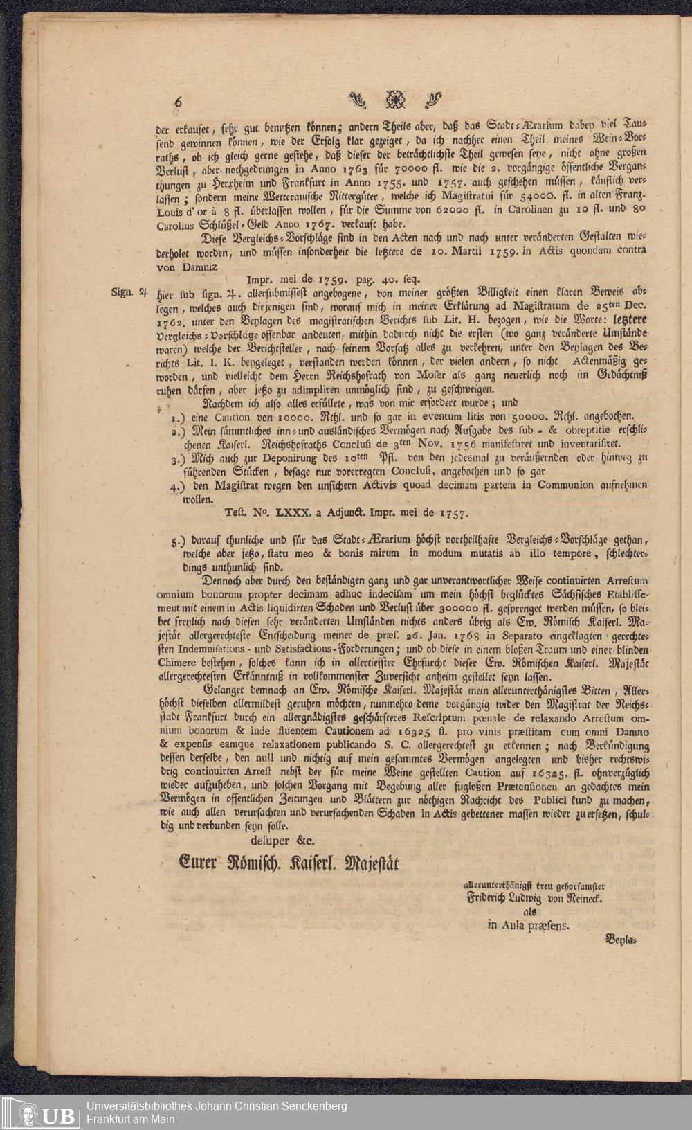 Na 31 Nachlass Johann Christian Senckenberg, 199 - Rechtsstreit zwischen von Reineck und dem Magistrat