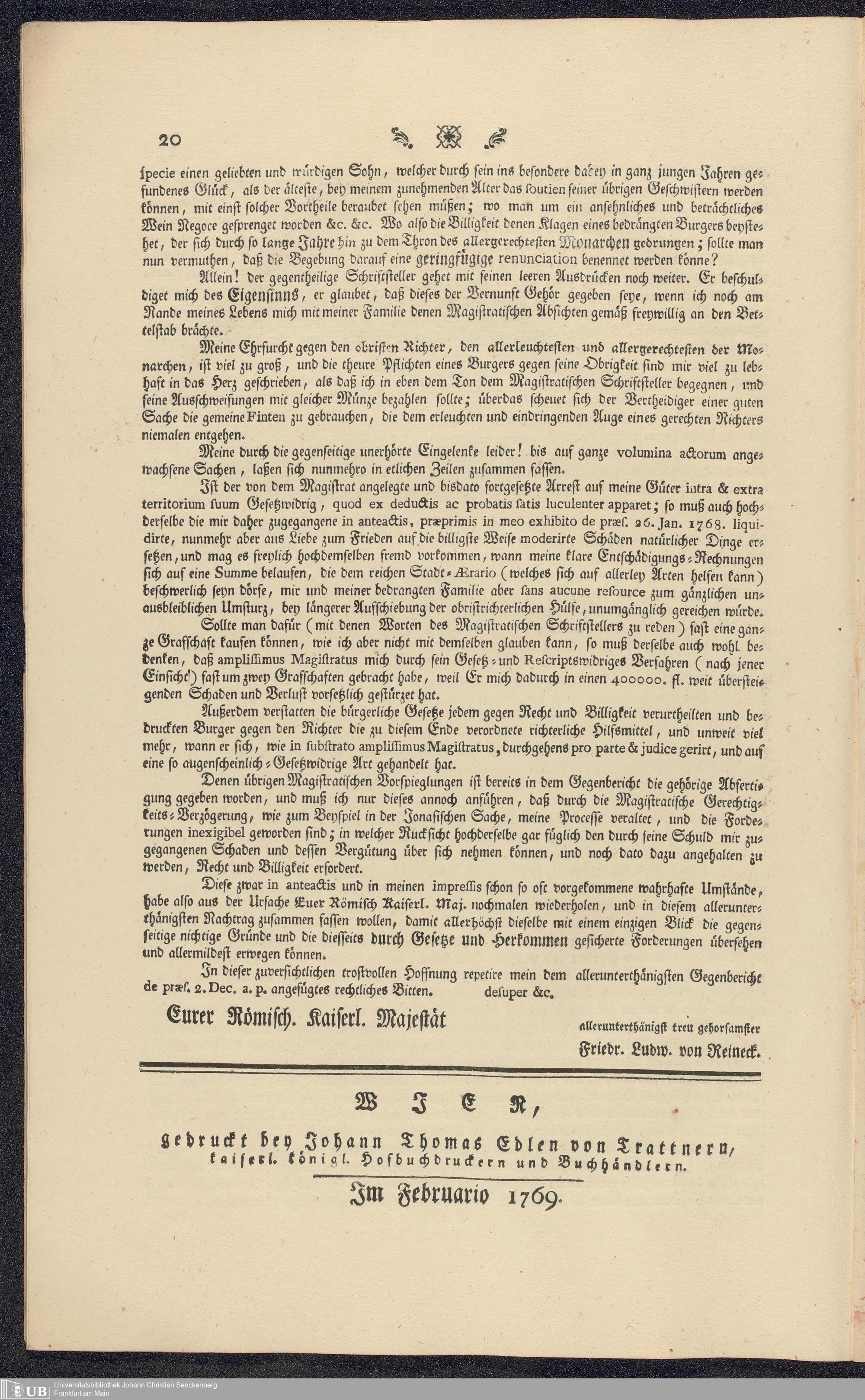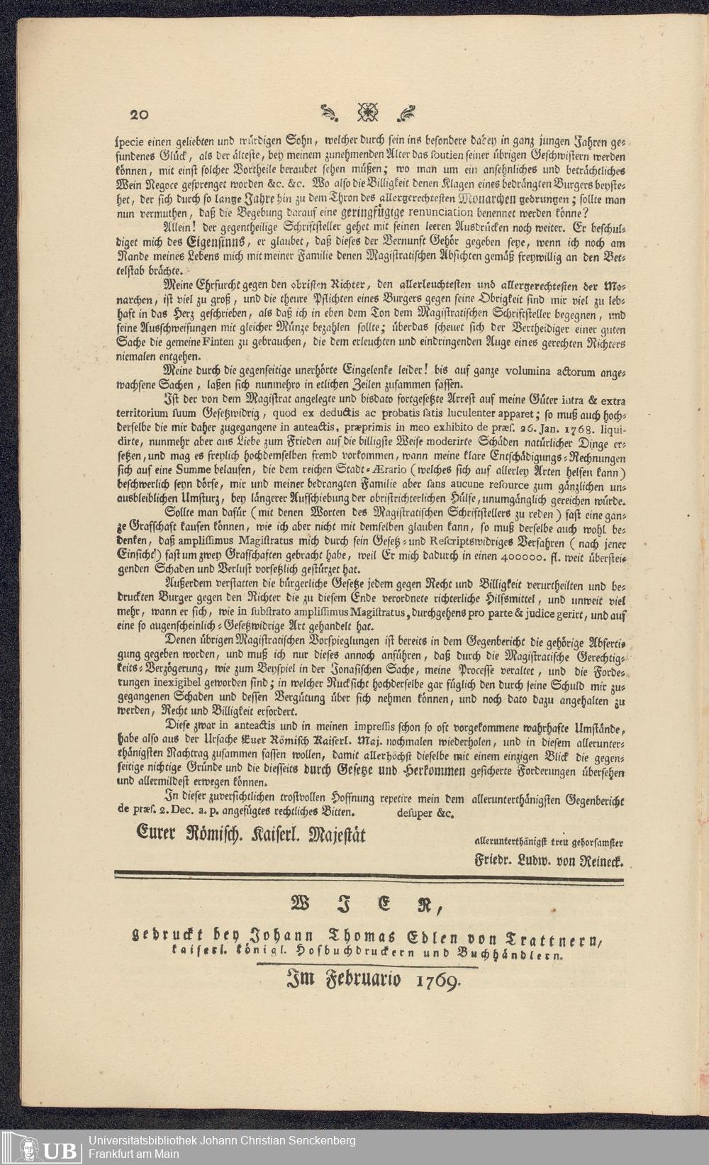 Na 31 Nachlass Johann Christian Senckenberg, 199 - Rechtsstreit zwischen von Reineck und dem Magistrat