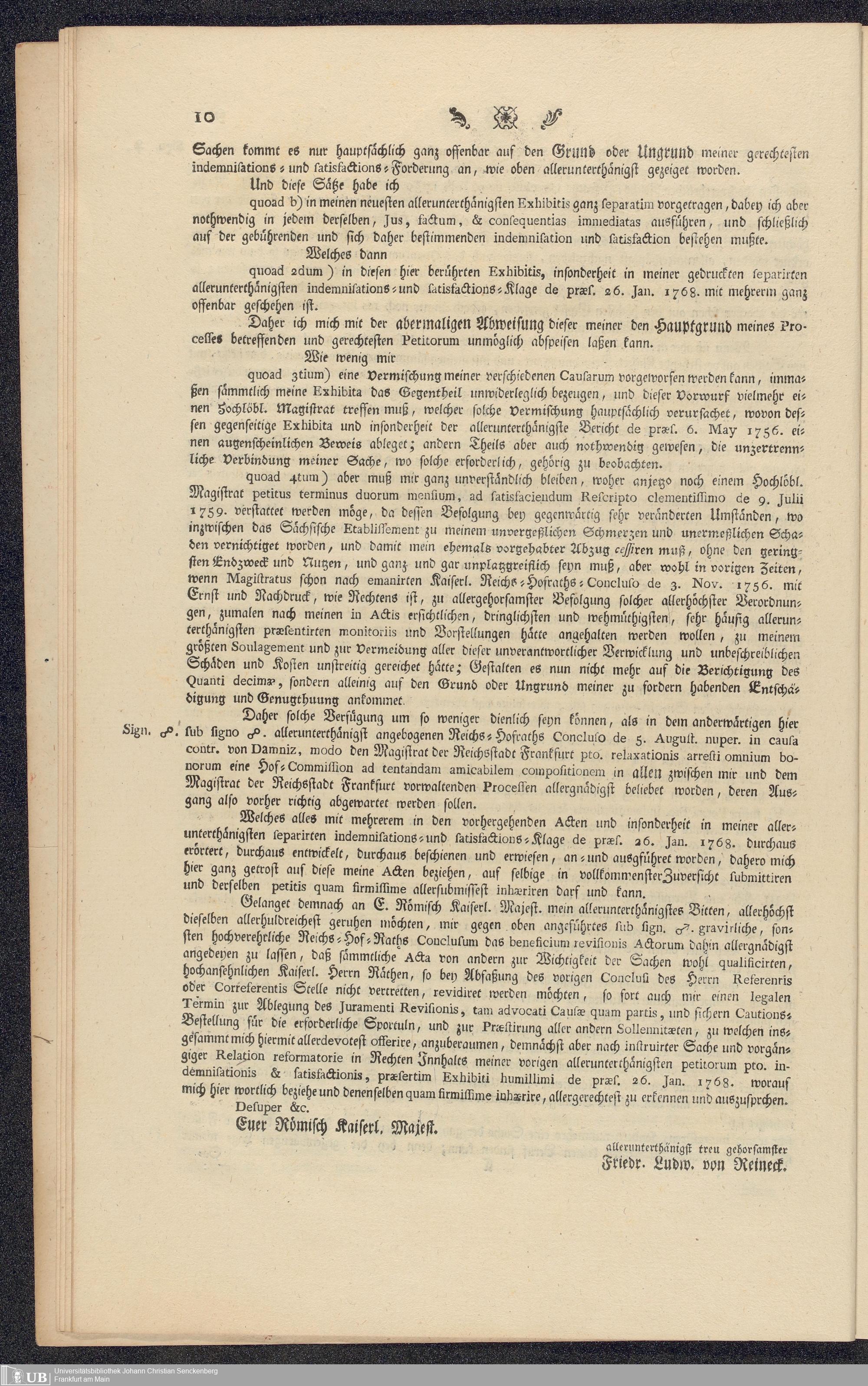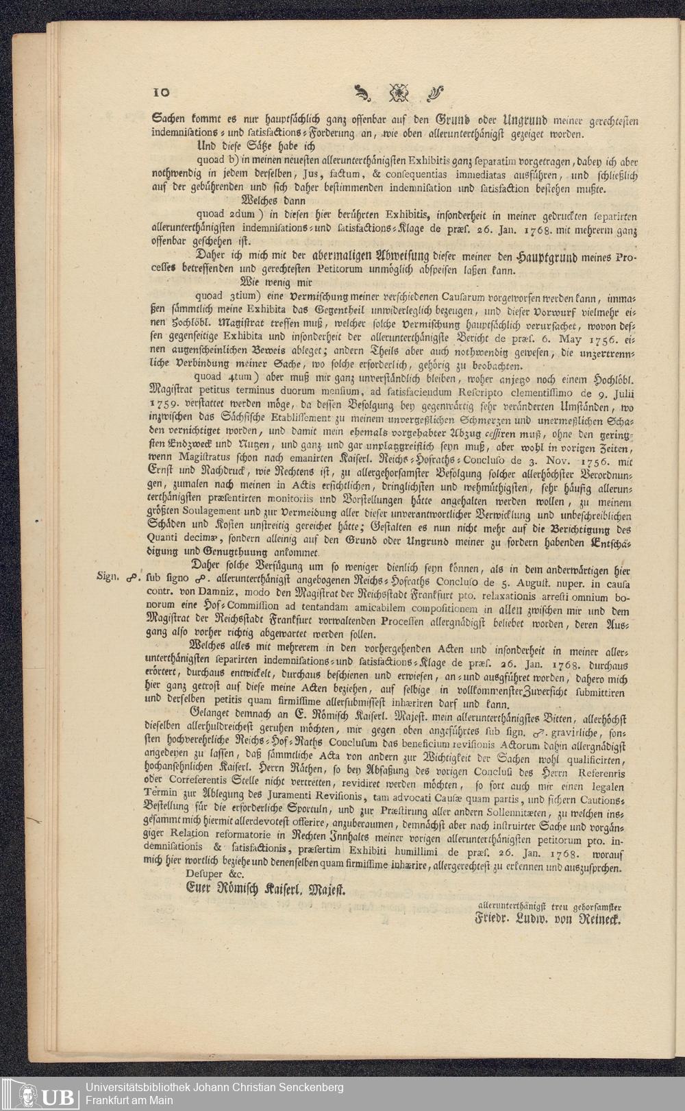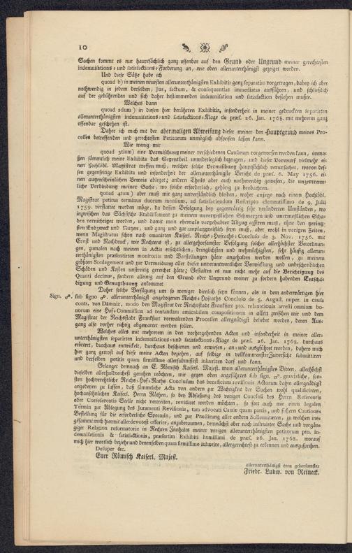 Na 31 Nachlass Johann Christian Senckenberg, 199 - Rechtsstreit zwischen von Reineck und dem Magistrat