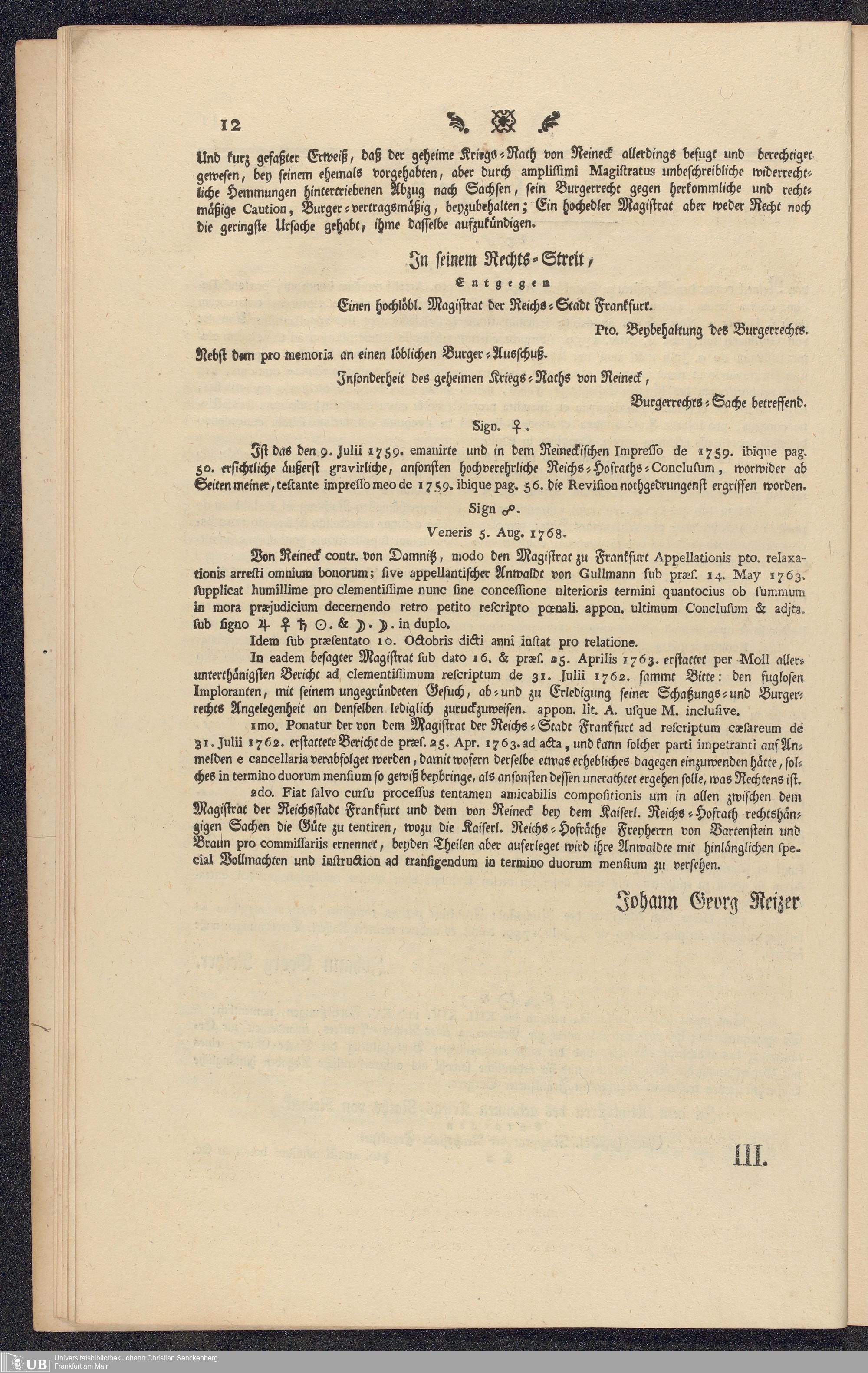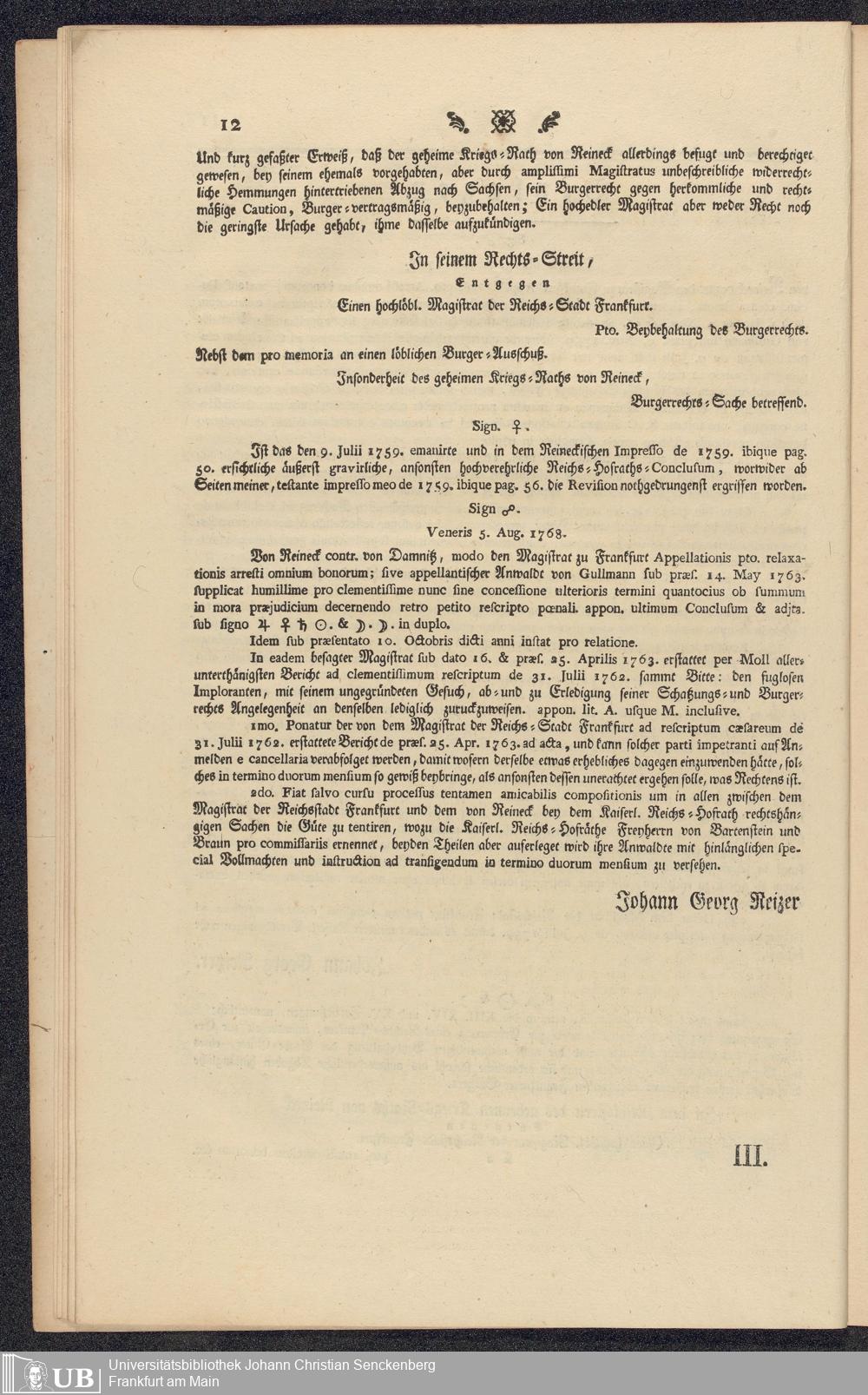 Na 31 Nachlass Johann Christian Senckenberg, 199 - Rechtsstreit zwischen von Reineck und dem Magistrat