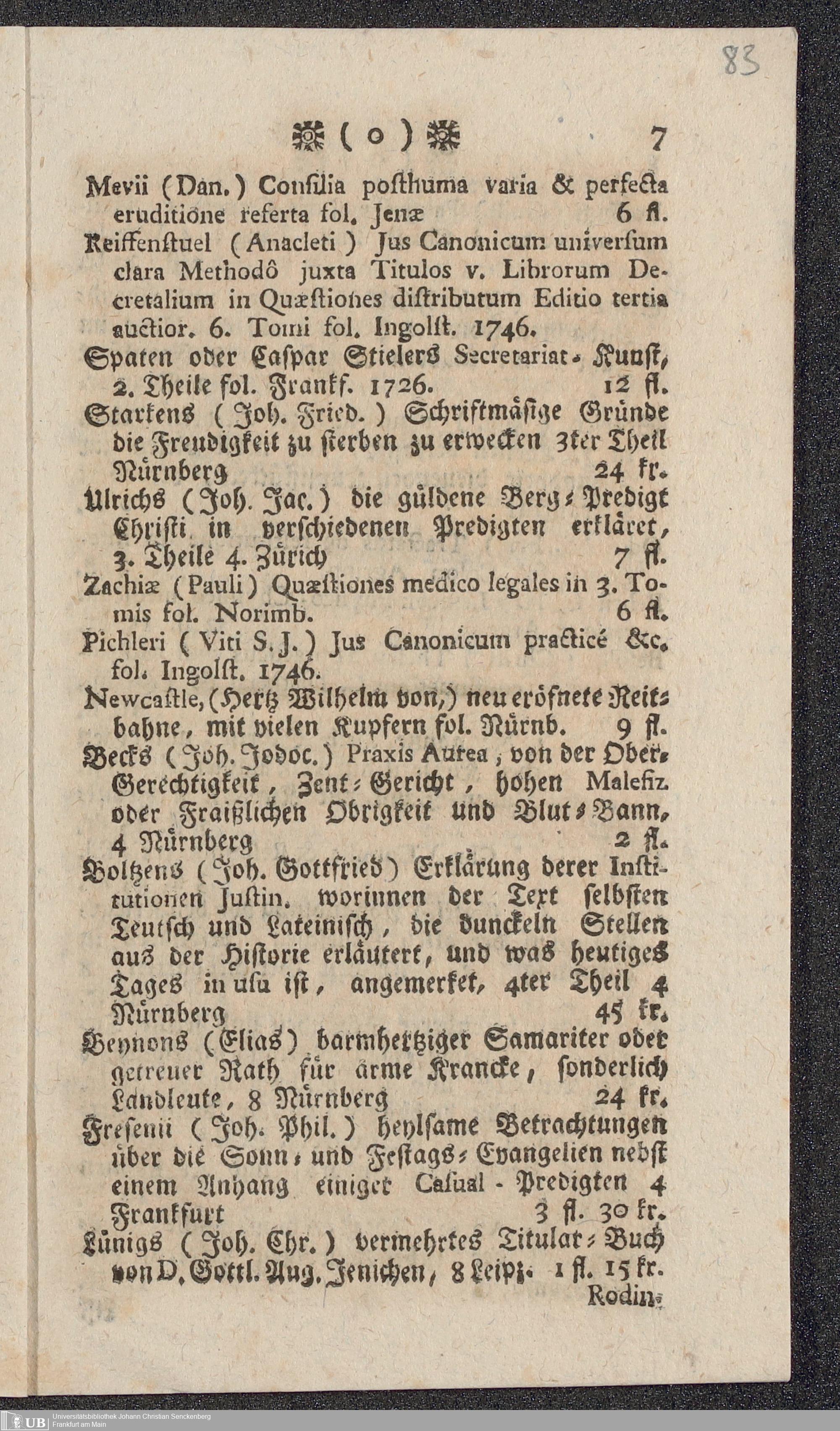 Nachlass Johann Christian Senckenberg