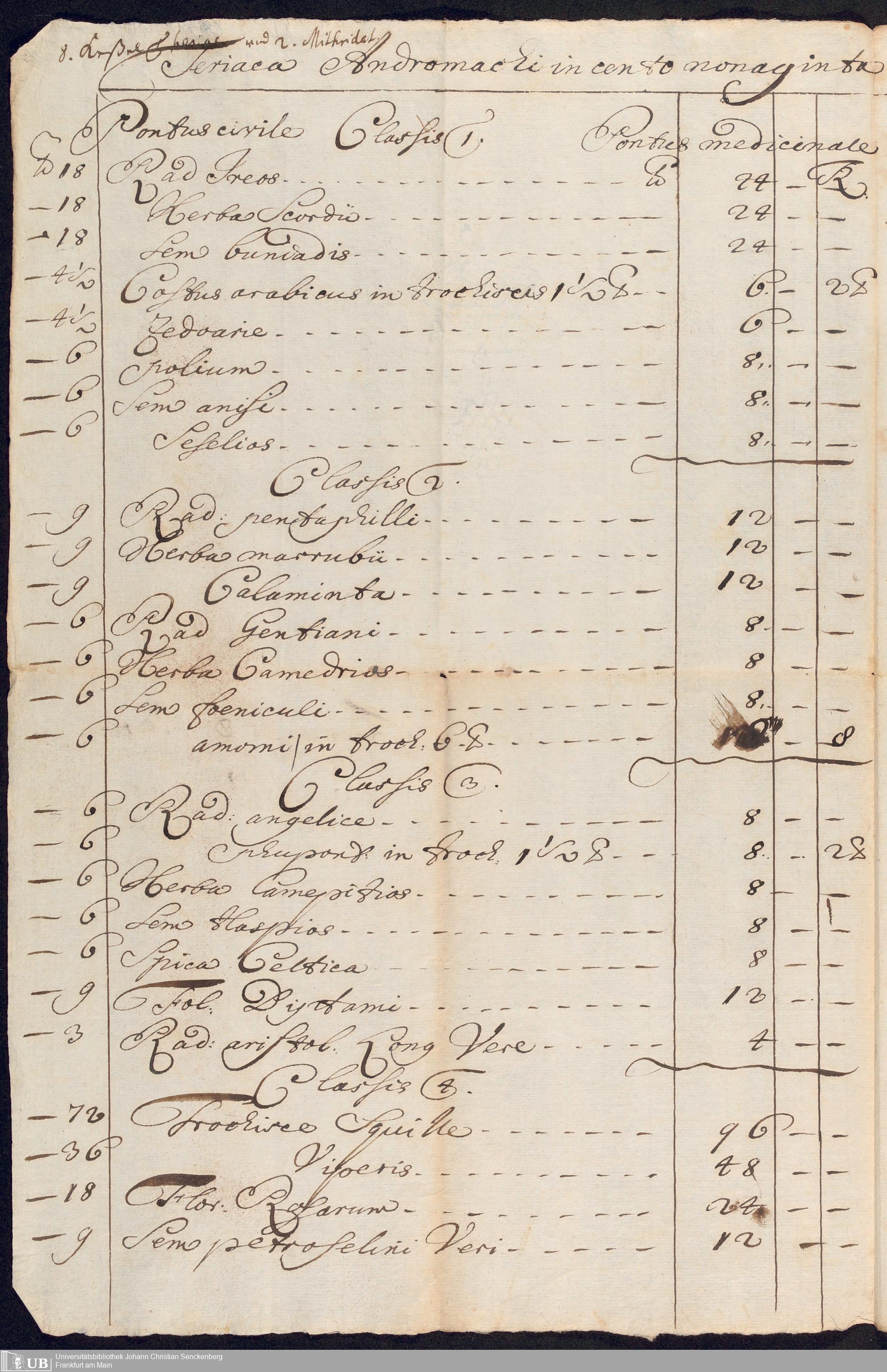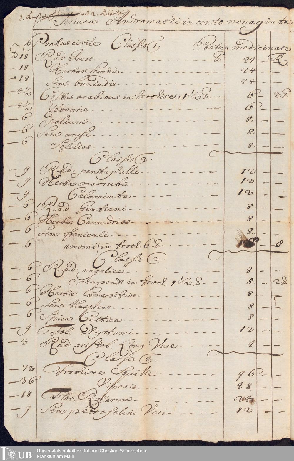 Na 31 Nachlass Johann Christian Senckenberg, 275 - Nachrichten de Compositionibus Theriacae
