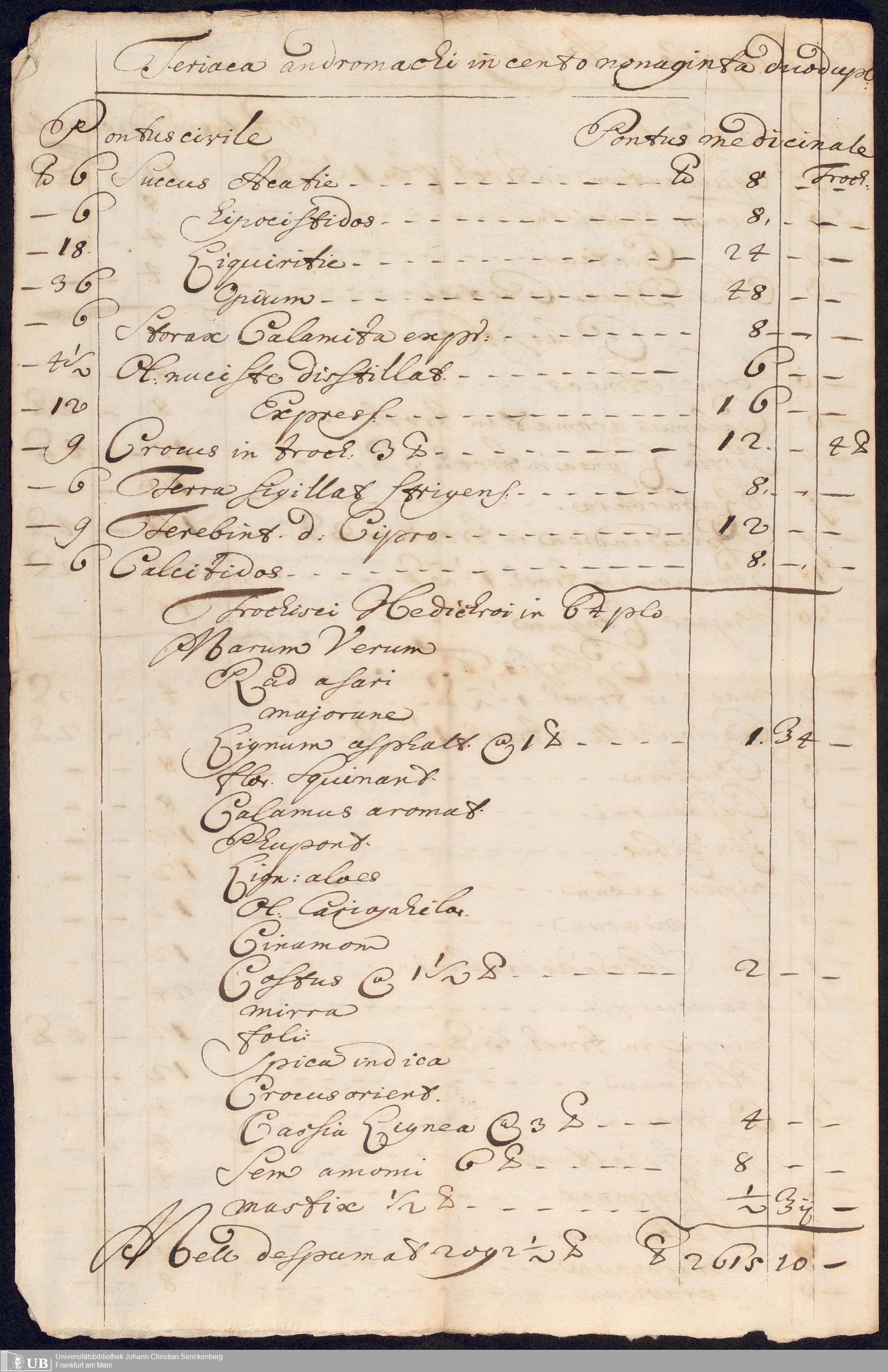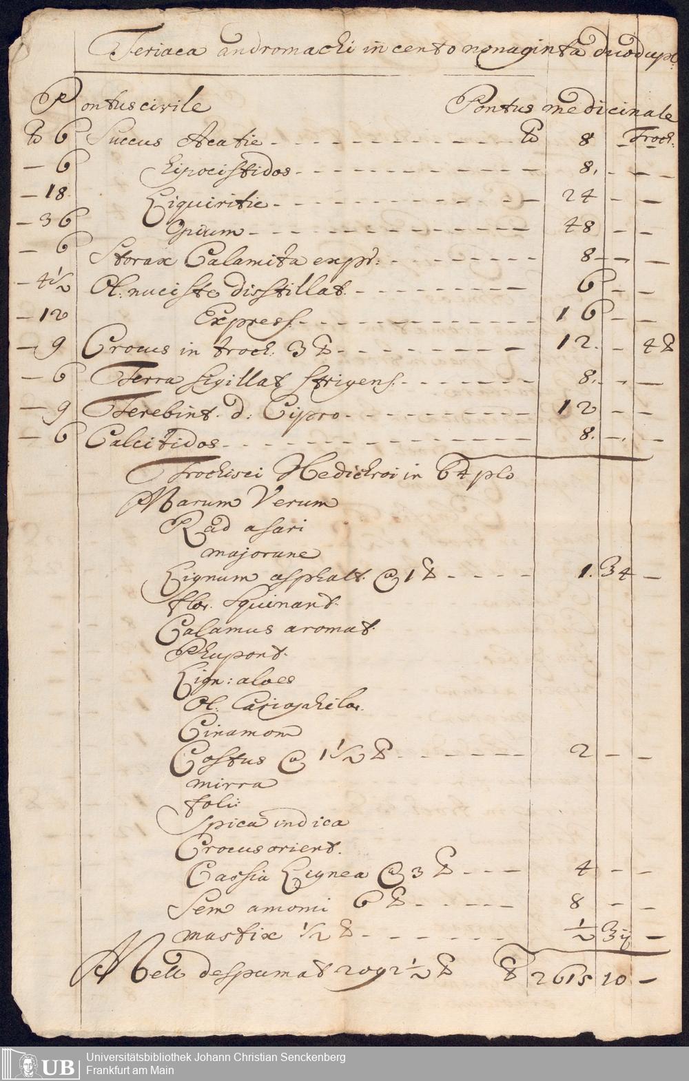 Na 31 Nachlass Johann Christian Senckenberg, 275 - Nachrichten de Compositionibus Theriacae
