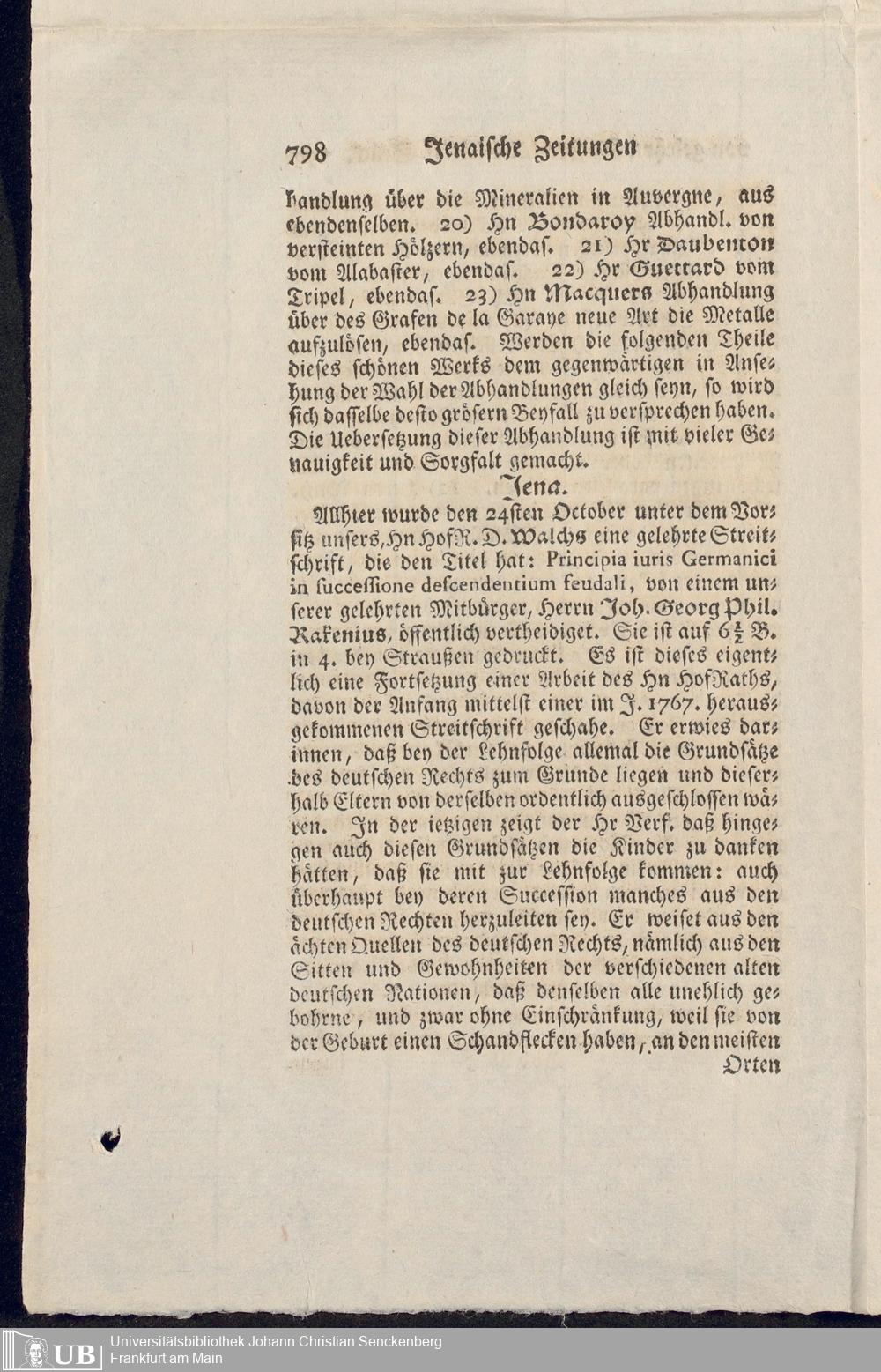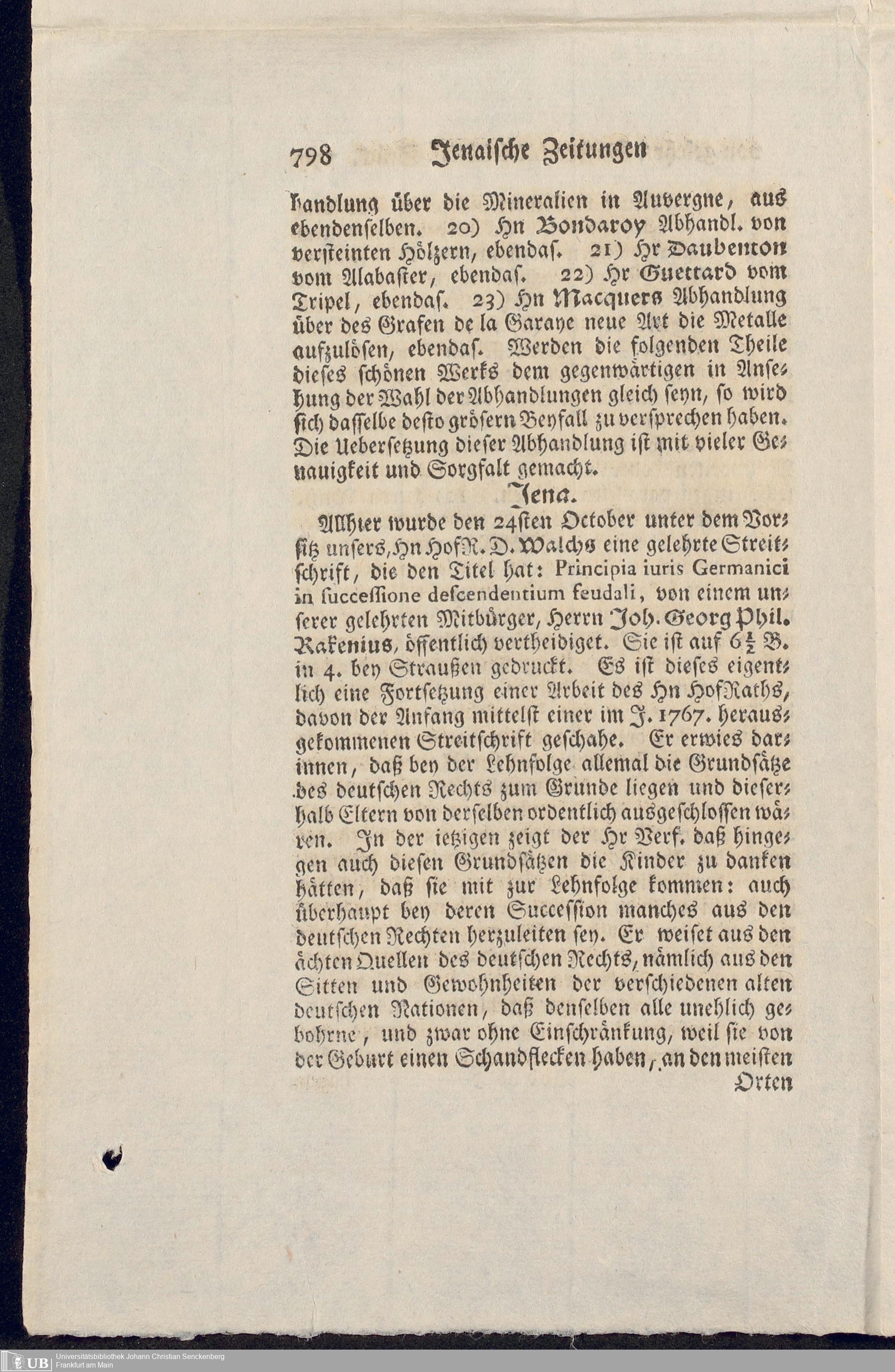 Na 31 Nachlass Johann Christian Senckenberg, 362 - Pressebesprechungen und private Anerkennungsschreiben über die Stiftung