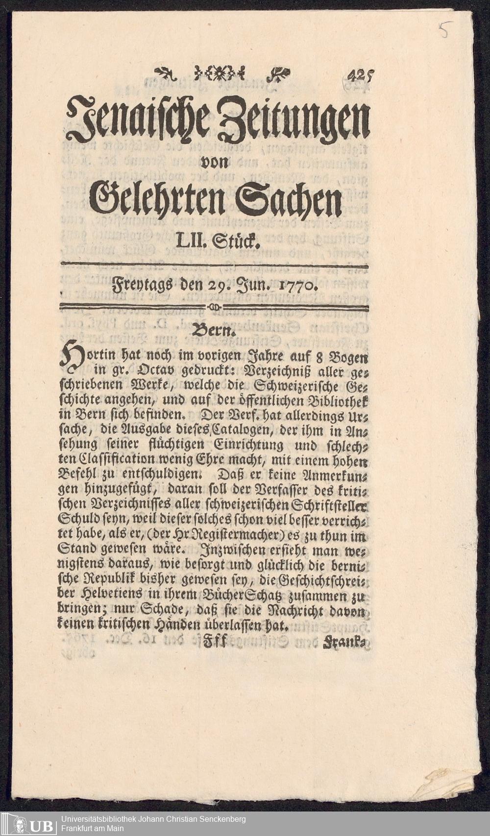 Na 31 Nachlass Johann Christian Senckenberg, 362 - Pressebesprechungen und private Anerkennungsschreiben über die Stiftung