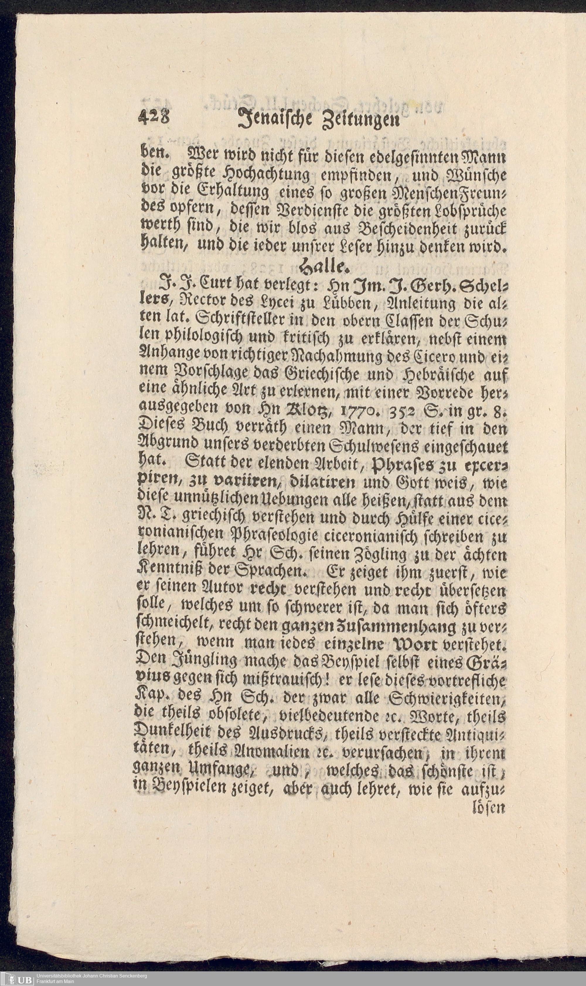 Na 31 Nachlass Johann Christian Senckenberg, 362 - Pressebesprechungen und private Anerkennungsschreiben über die Stiftung