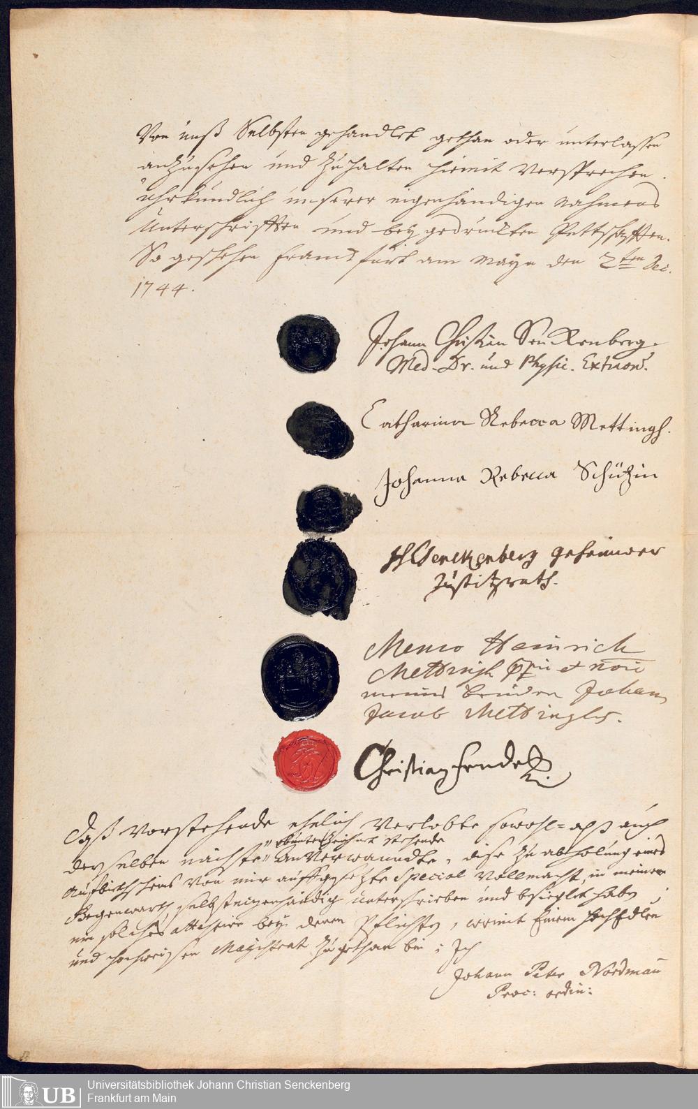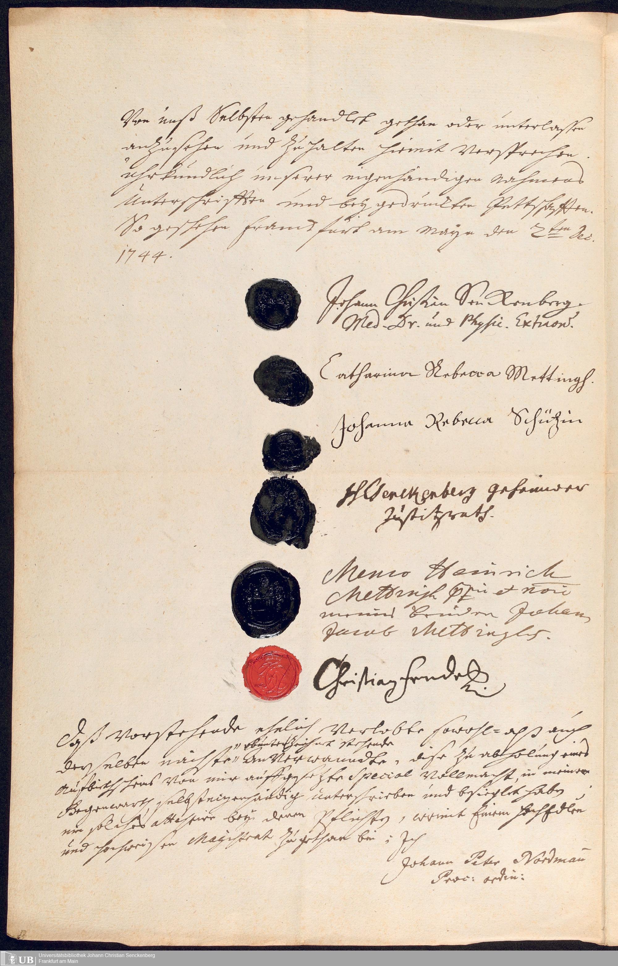 Na 31 Nachlass Johann Christian Senckenberg, 452 - Zwei Vollmachten für Prokurator Nordmann zur Bestellung des Aufgebotes