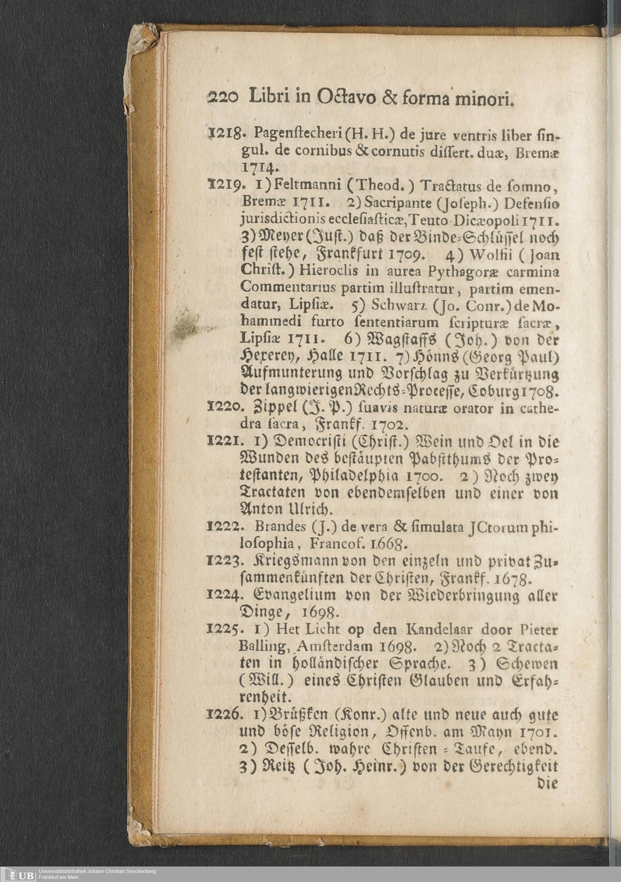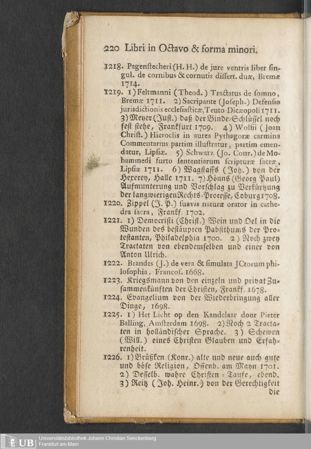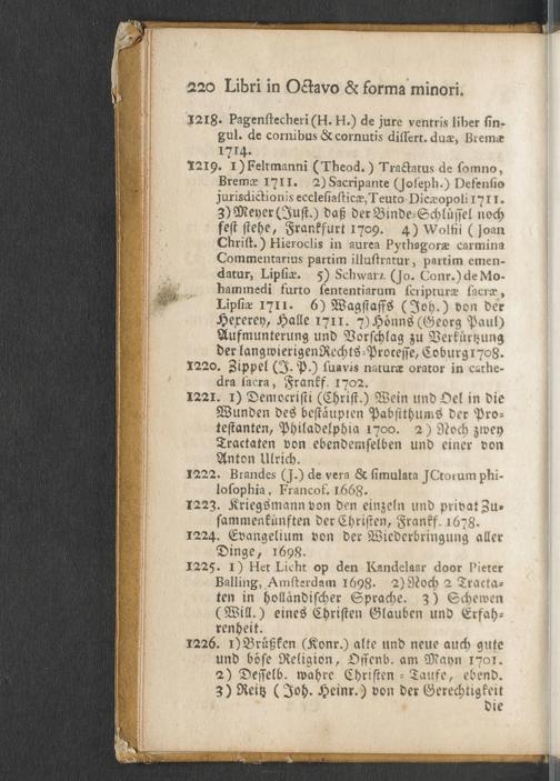 Na 31 Nachlass Johann Christian Senckenberg, 451 - Bücherverzeichnis mit Preisangaben (p.)