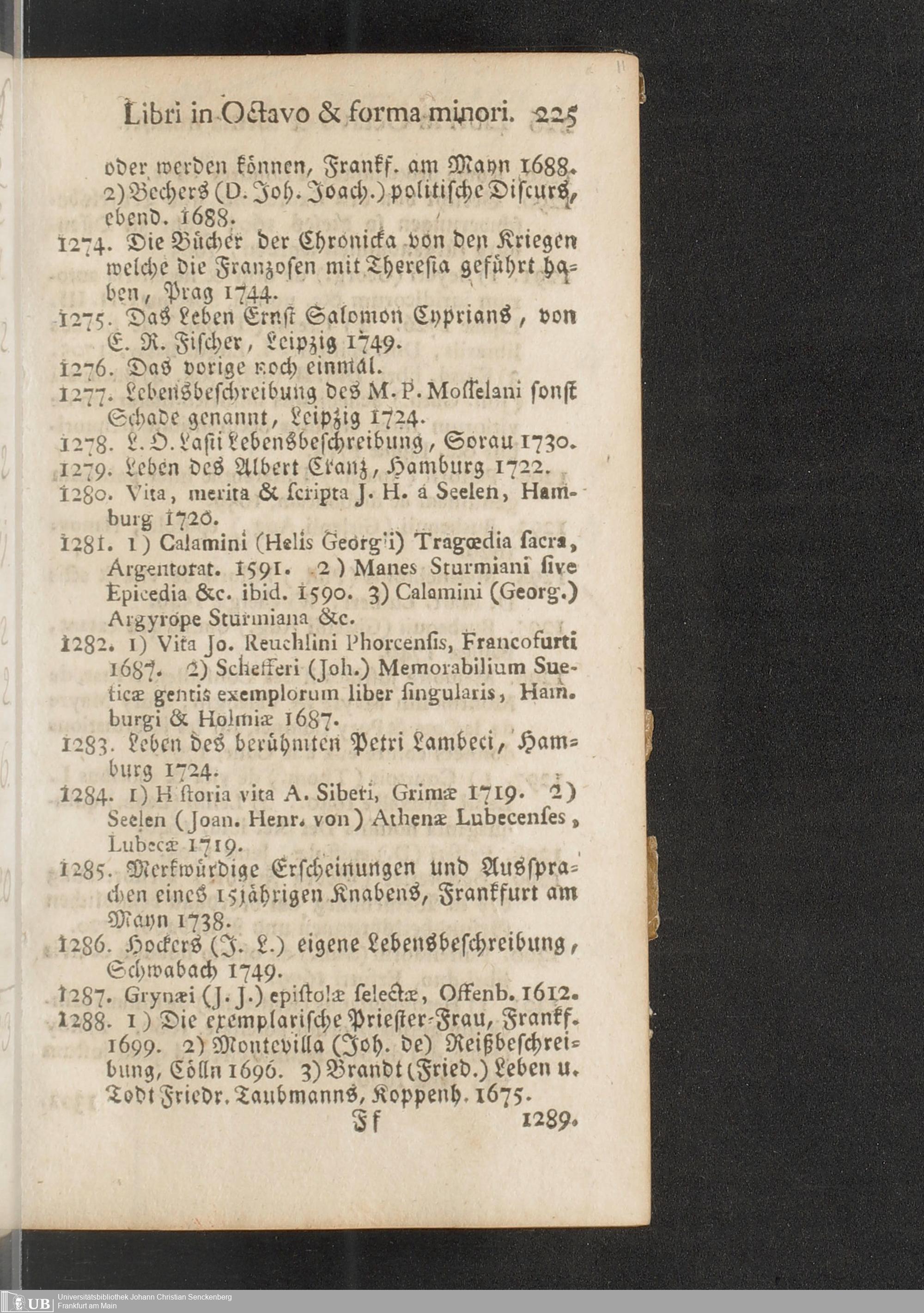 Na 31 Nachlass Johann Christian Senckenberg, 451 - Bücherverzeichnis mit Preisangaben (p.)