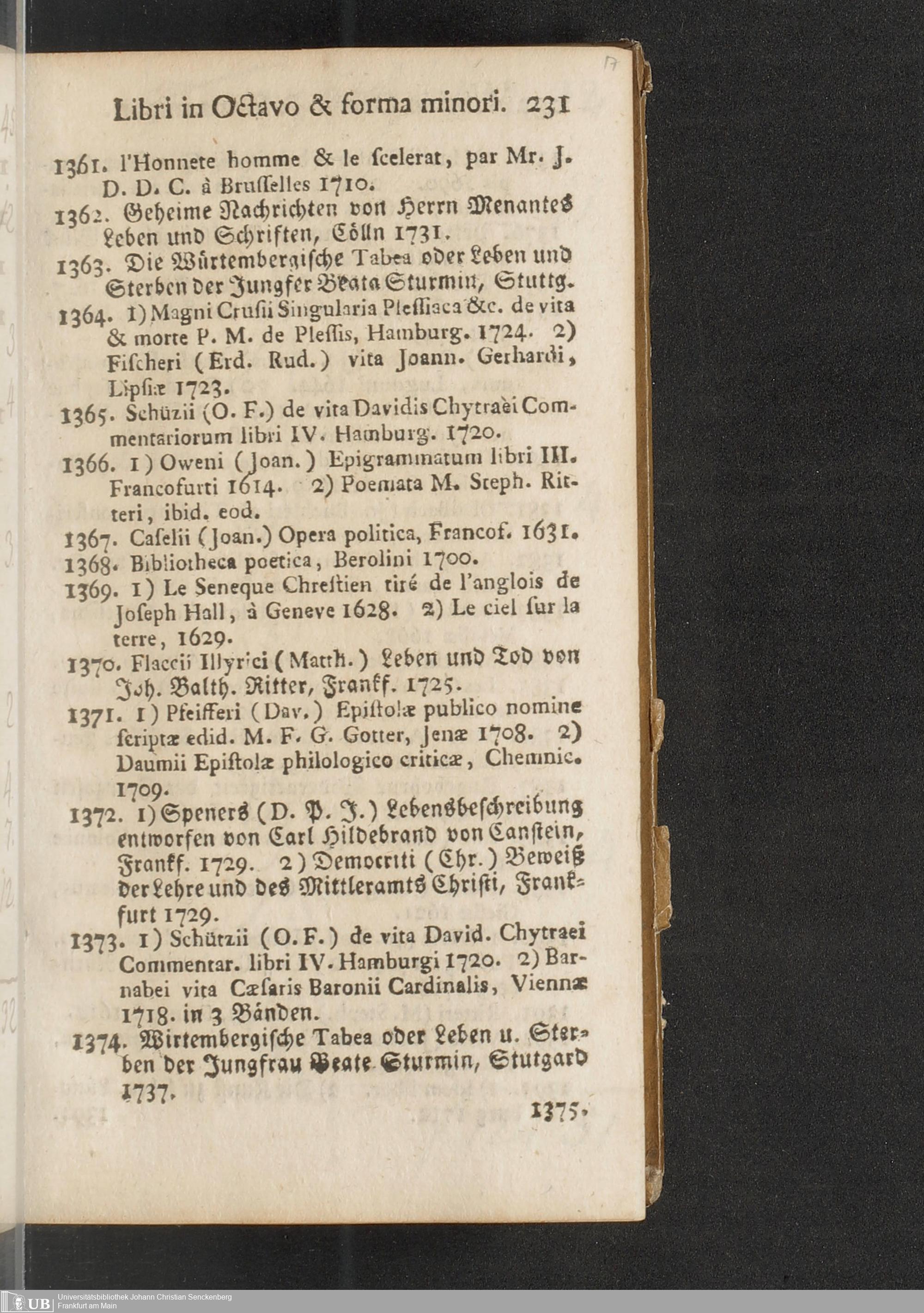 Na 31 Nachlass Johann Christian Senckenberg, 451 - Bücherverzeichnis mit Preisangaben (p.)
