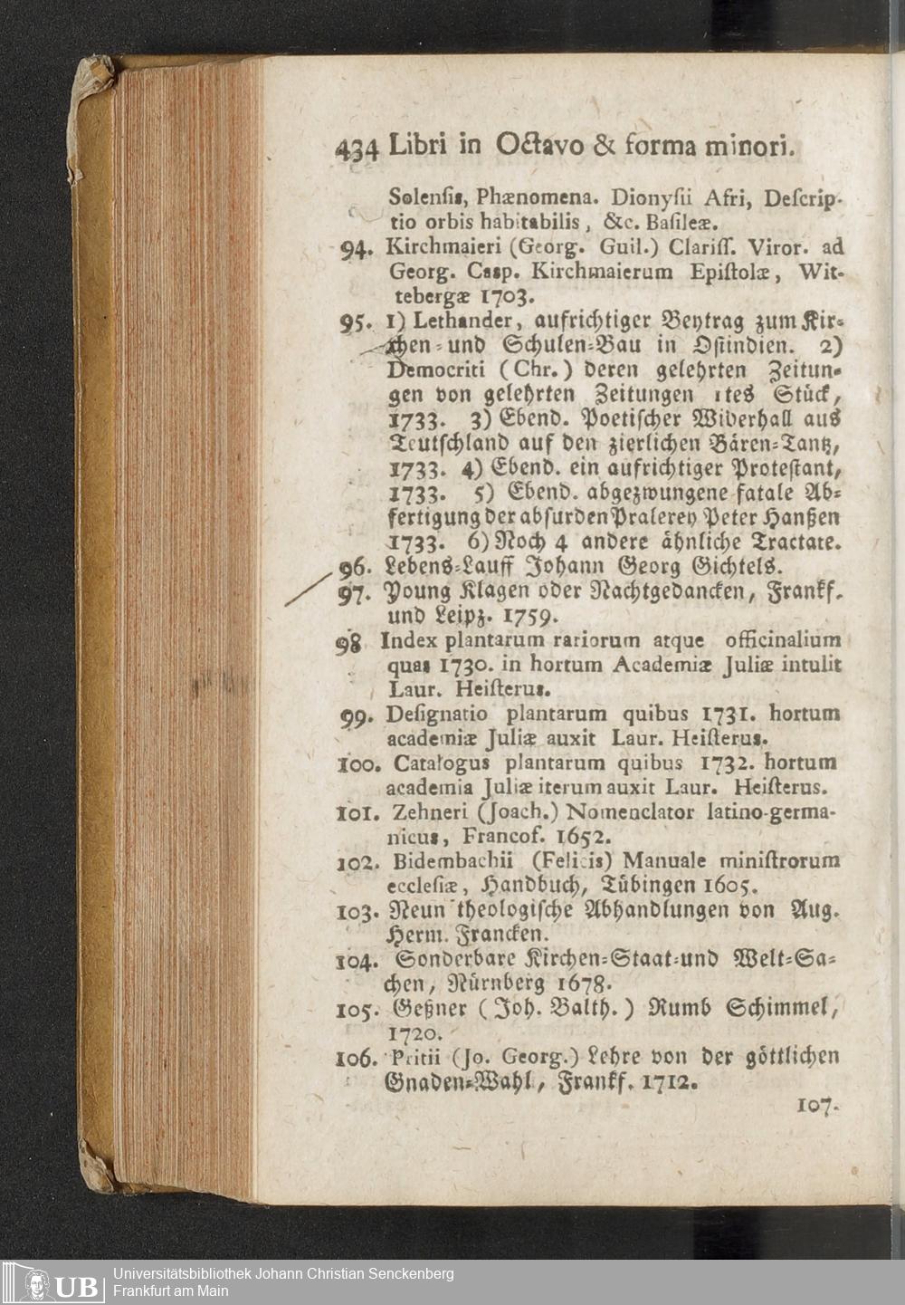 Na 31 Nachlass Johann Christian Senckenberg, 451 - Bücherverzeichnis mit Preisangaben