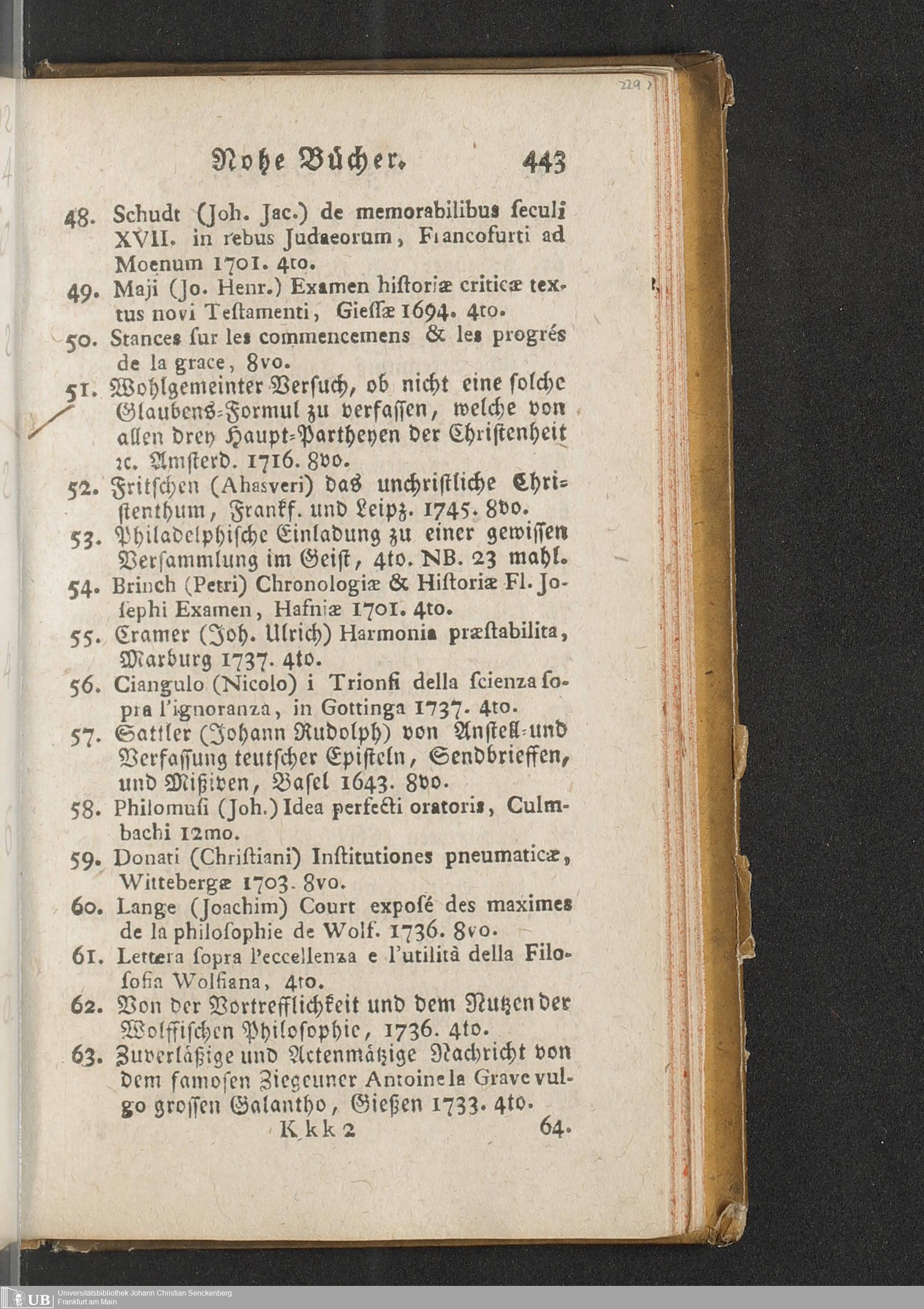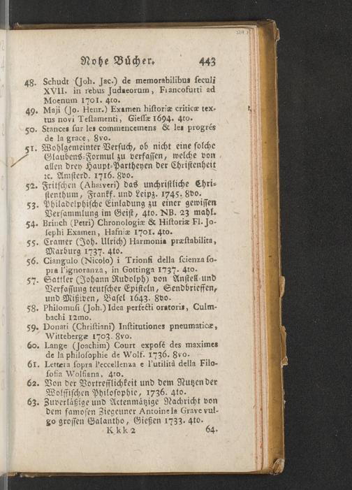 Na 31 Nachlass Johann Christian Senckenberg, 451 - Bücherverzeichnis mit Preisangaben