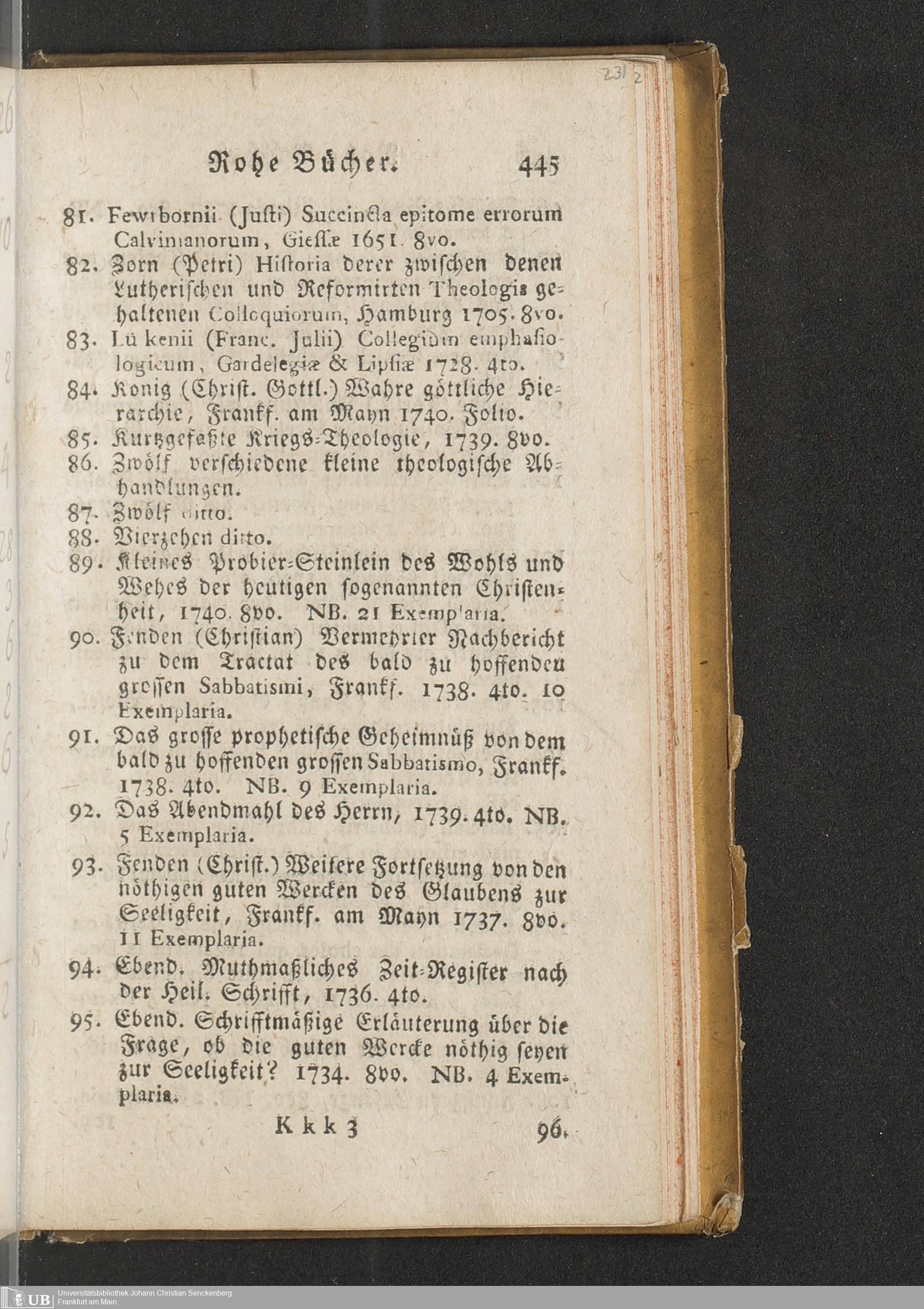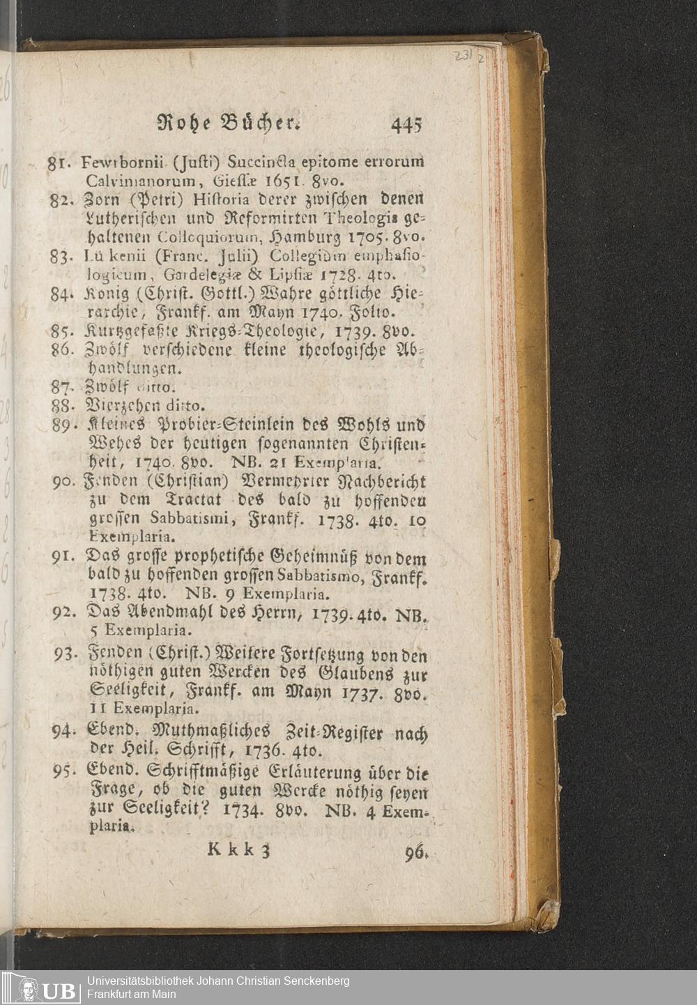 Na 31 Nachlass Johann Christian Senckenberg, 451 - Bücherverzeichnis mit Preisangaben