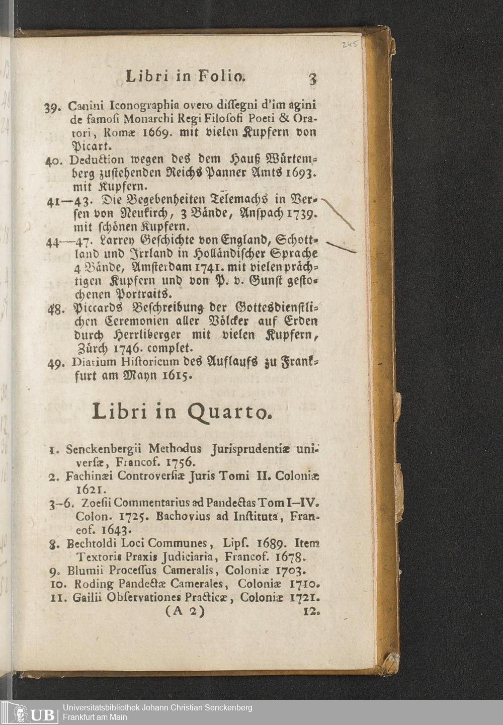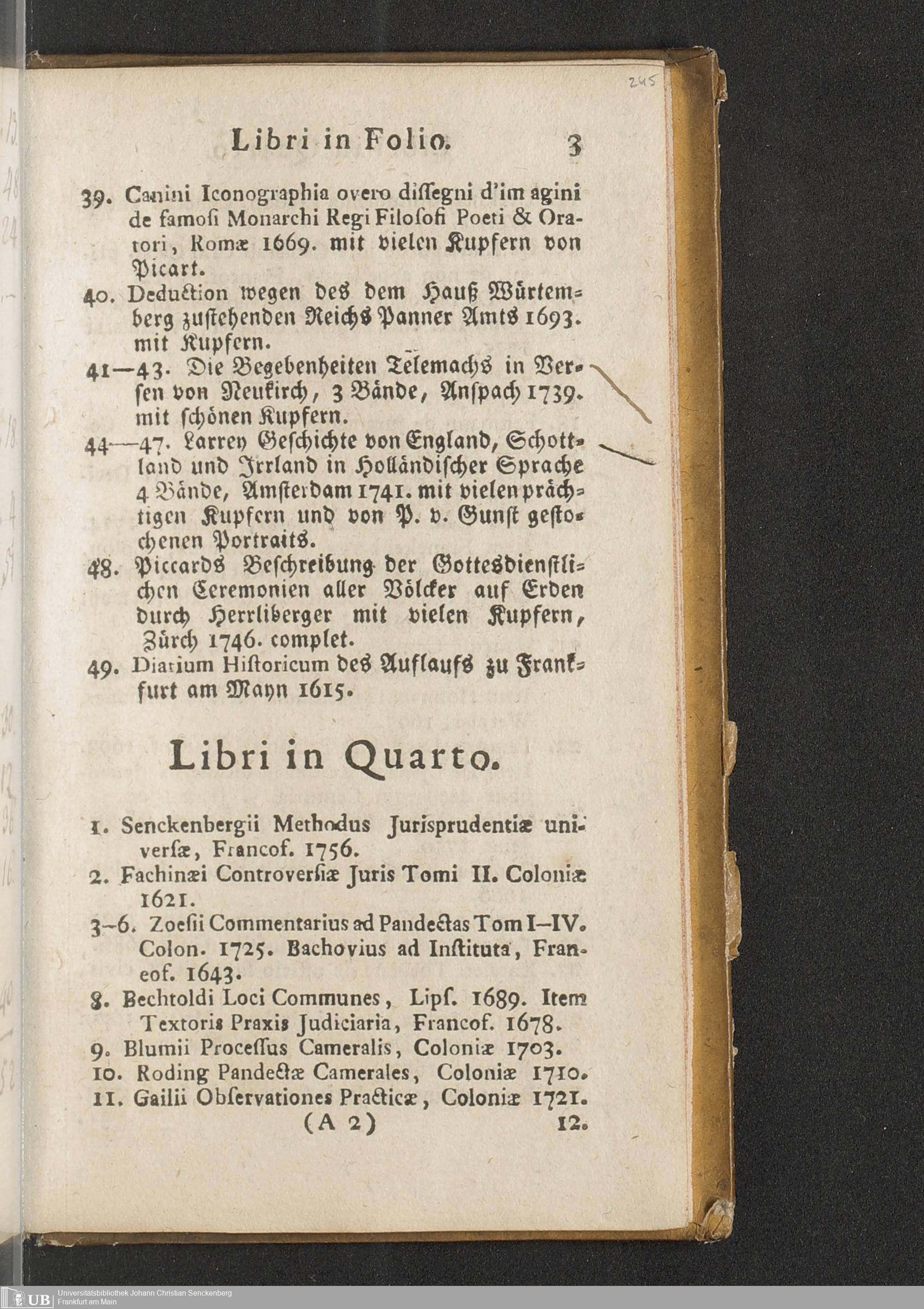 Na 31 Nachlass Johann Christian Senckenberg, 451 - Bücherverzeichnis mit Preisangaben