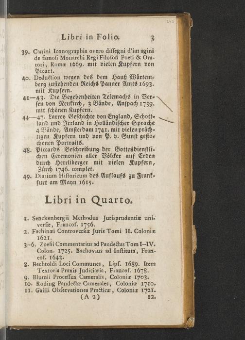 Na 31 Nachlass Johann Christian Senckenberg, 451 - Bücherverzeichnis mit Preisangaben (p.)