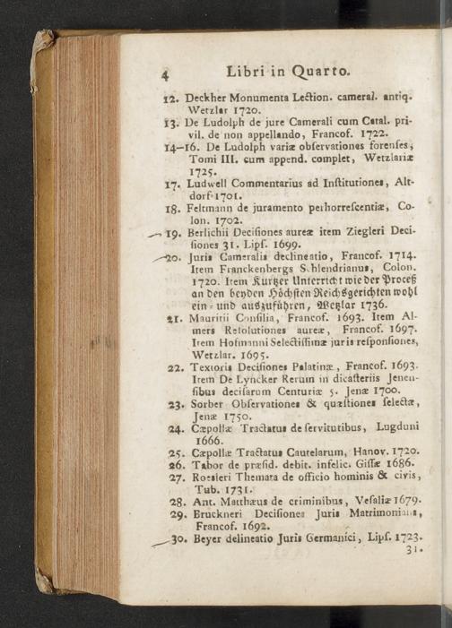Na 31 Nachlass Johann Christian Senckenberg, 451 - Bücherverzeichnis mit Preisangaben (p.)