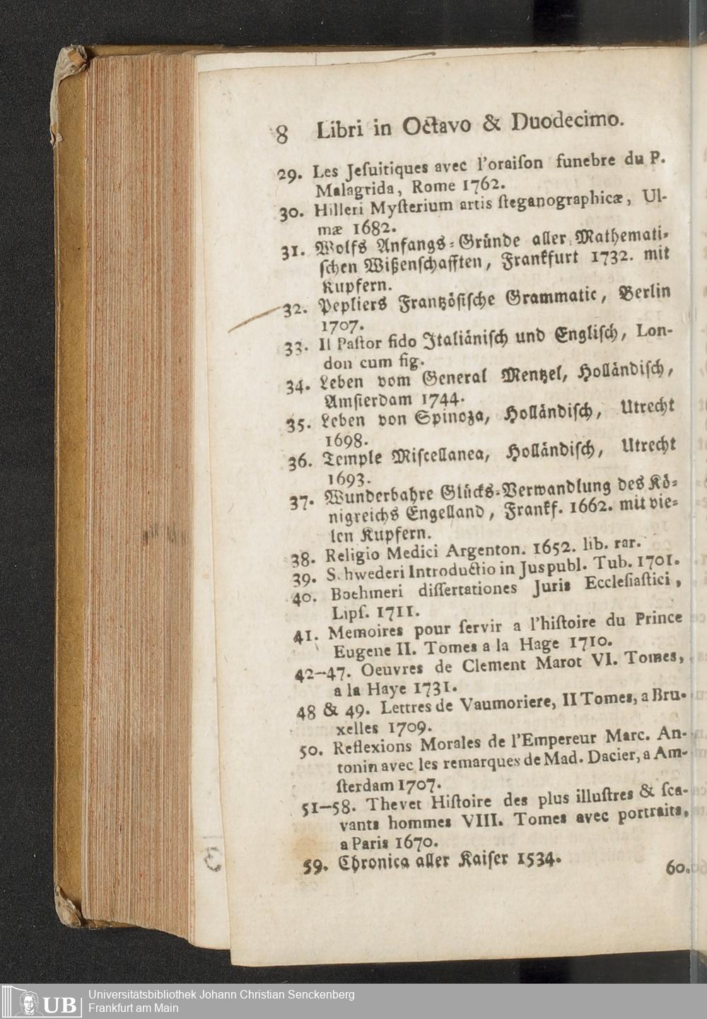 Na 31 Nachlass Johann Christian Senckenberg, 451 - Bücherverzeichnis mit Preisangaben (p.)
