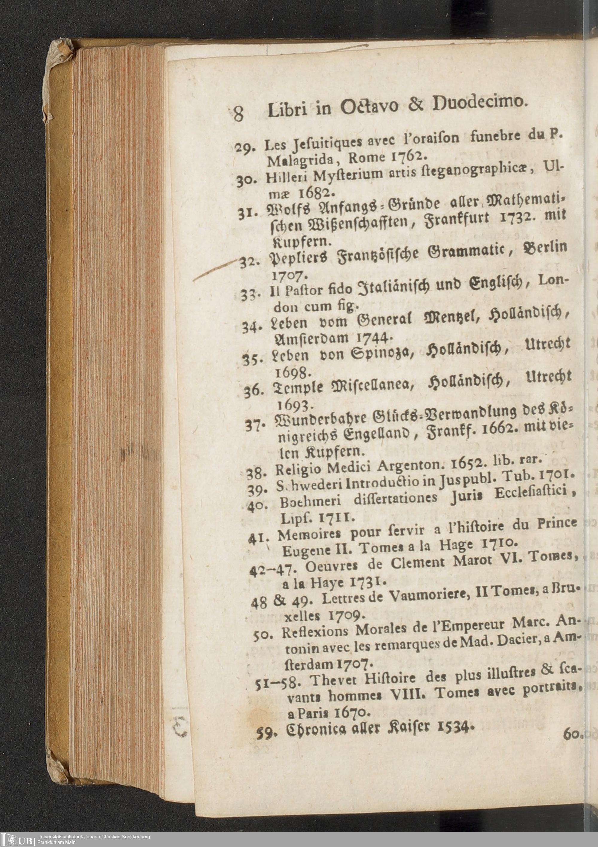 Na 31 Nachlass Johann Christian Senckenberg, 451 - Bücherverzeichnis mit Preisangaben
