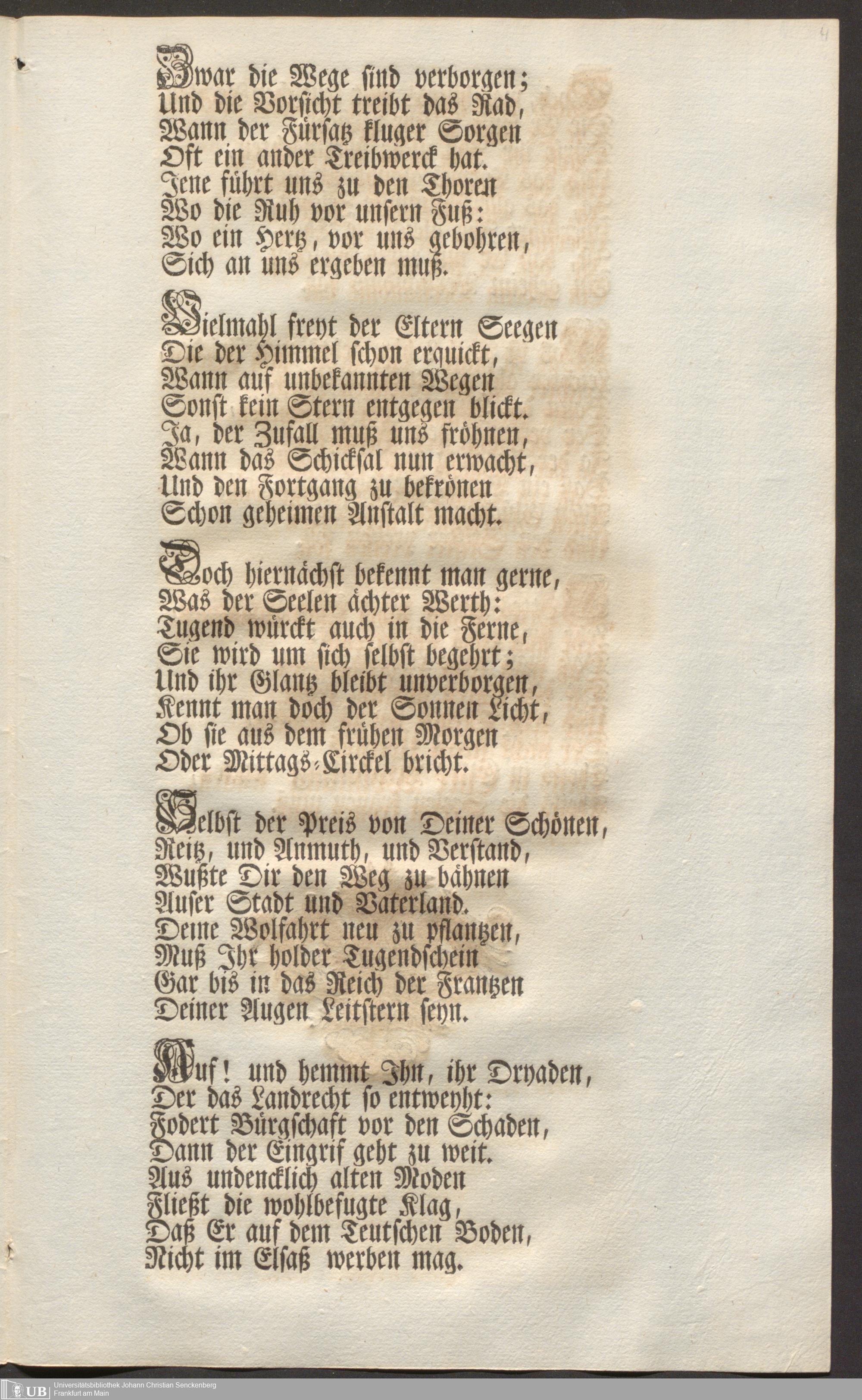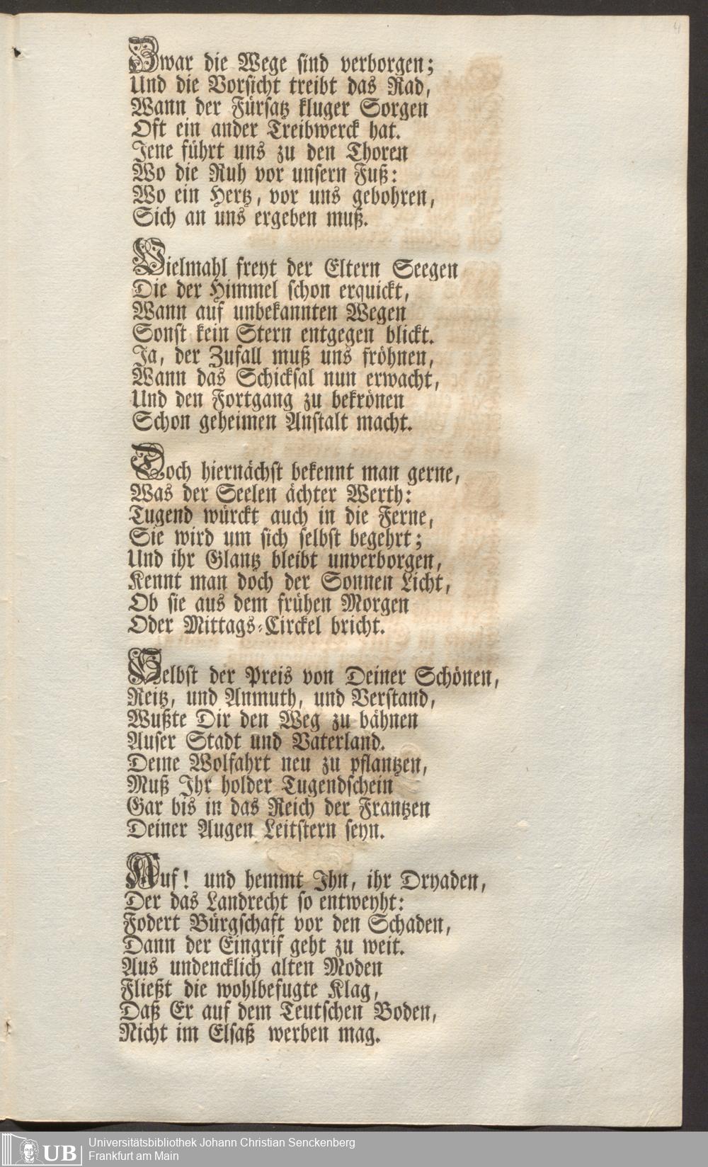 Na 31 Nachlass Johann Christian Senckenberg, 103 - Glückwunsch-Druckschrift zum Senckenberg und Kröberschen Trauungsfest
