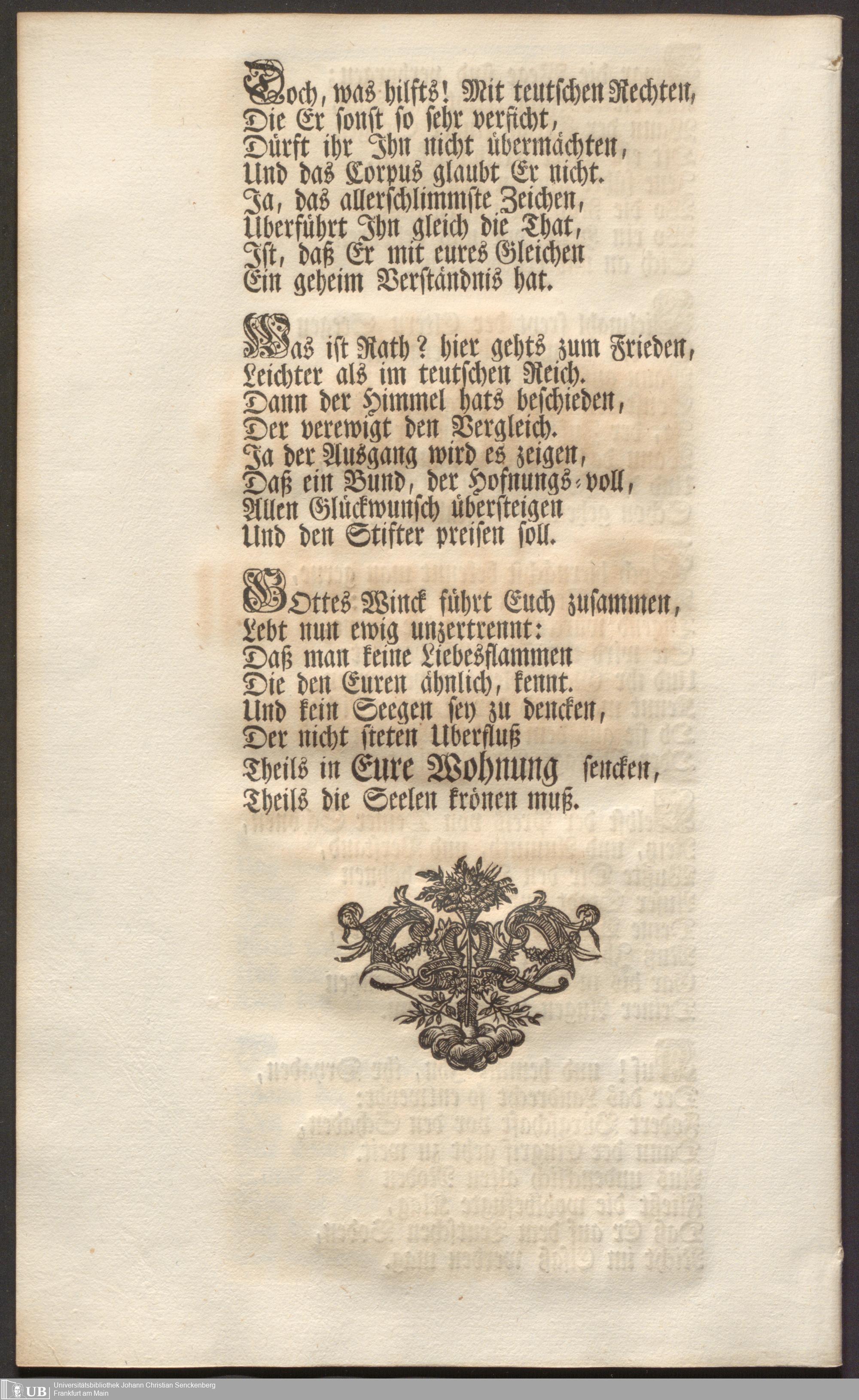 Na 31 Nachlass Johann Christian Senckenberg, 103 - Glückwunsch-Druckschrift zum Senckenberg und Kröberschen Trauungsfest