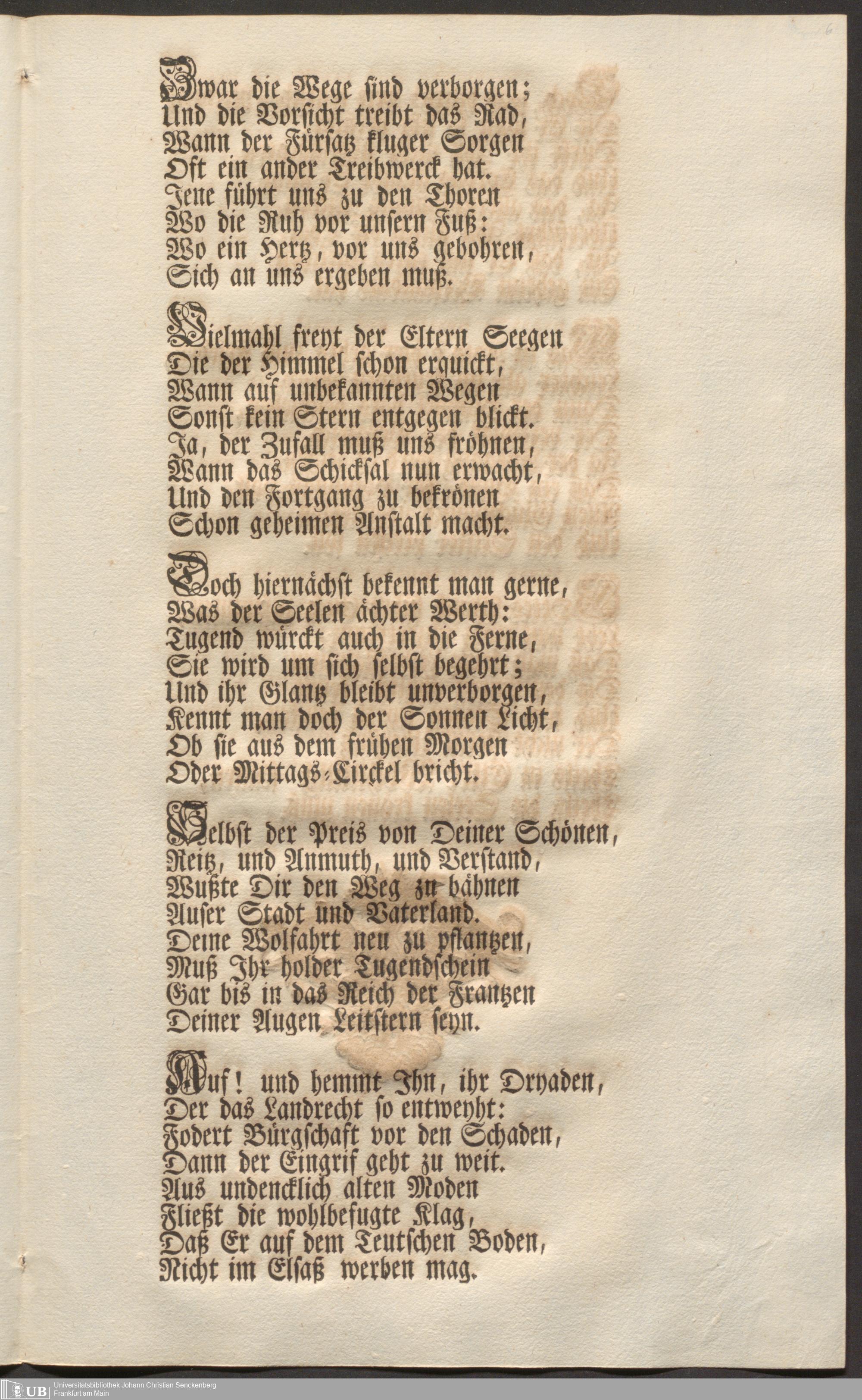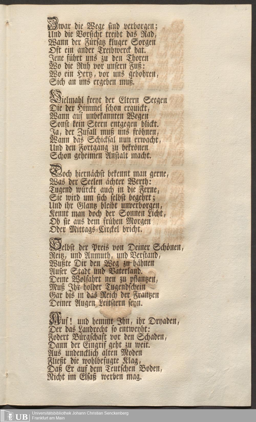 Na 31 Nachlass Johann Christian Senckenberg, 103 - Glückwunsch-Druckschrift zum Senckenberg und Kröberschen Trauungsfest