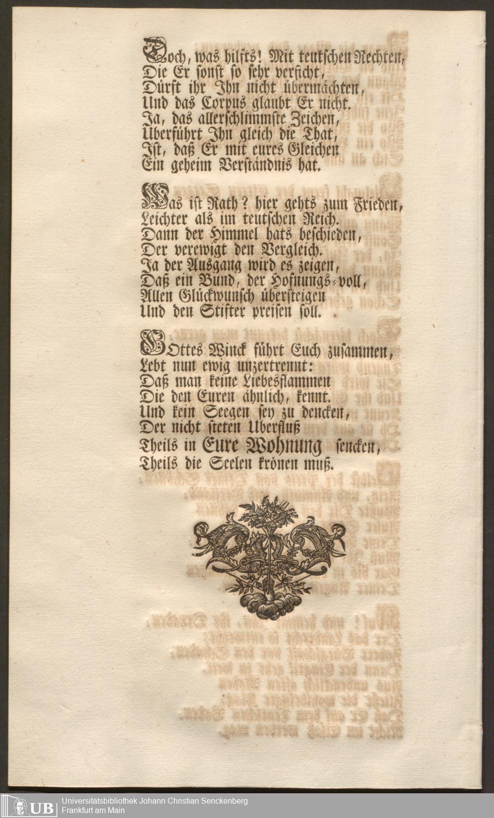 Na 31 Nachlass Johann Christian Senckenberg, 103 - Glückwunsch-Druckschrift zum Senckenberg und Kröberschen Trauungsfest