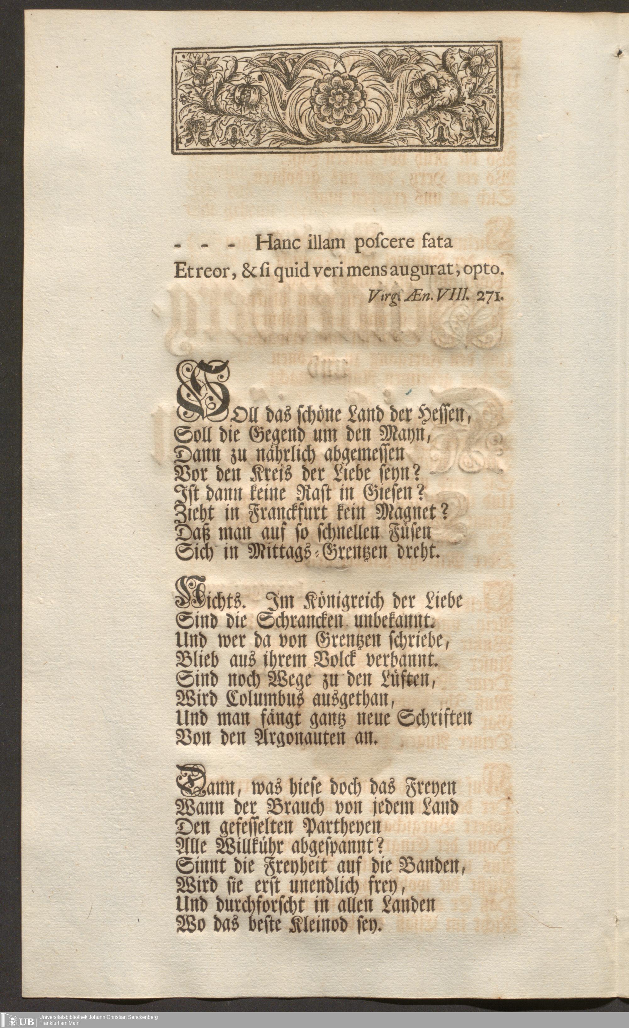 Na 31 Nachlass Johann Christian Senckenberg, 103 - Glückwunsch-Druckschrift zum Senckenberg und Kröberschen Trauungsfest