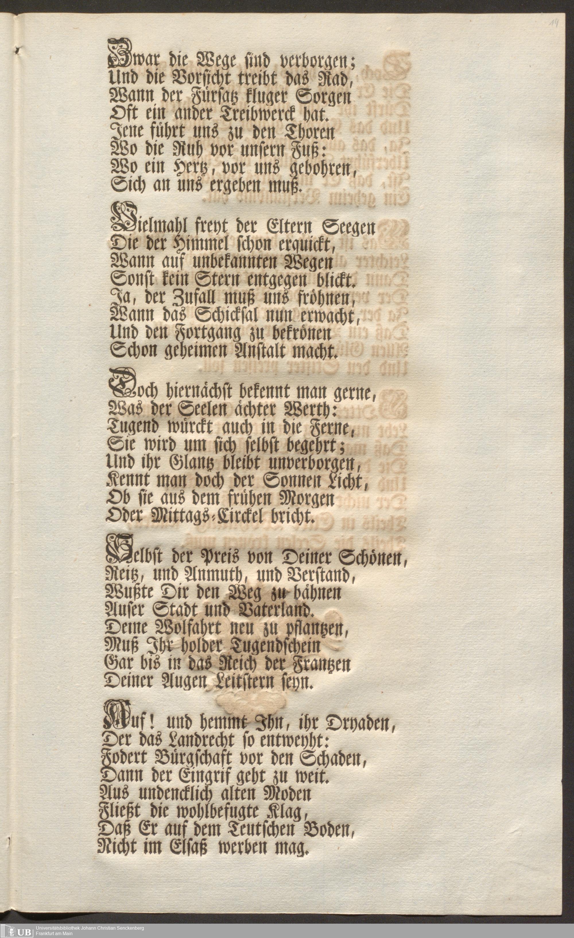 Na 31 Nachlass Johann Christian Senckenberg, 103 - Glückwunsch-Druckschrift zum Senckenberg und Kröberschen Trauungsfest