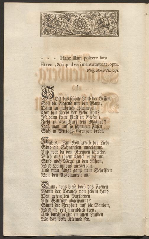 Na 31 Nachlass Johann Christian Senckenberg, 103 - Glückwunsch-Druckschrift zum Senckenberg und Kröberschen Trauungsfest