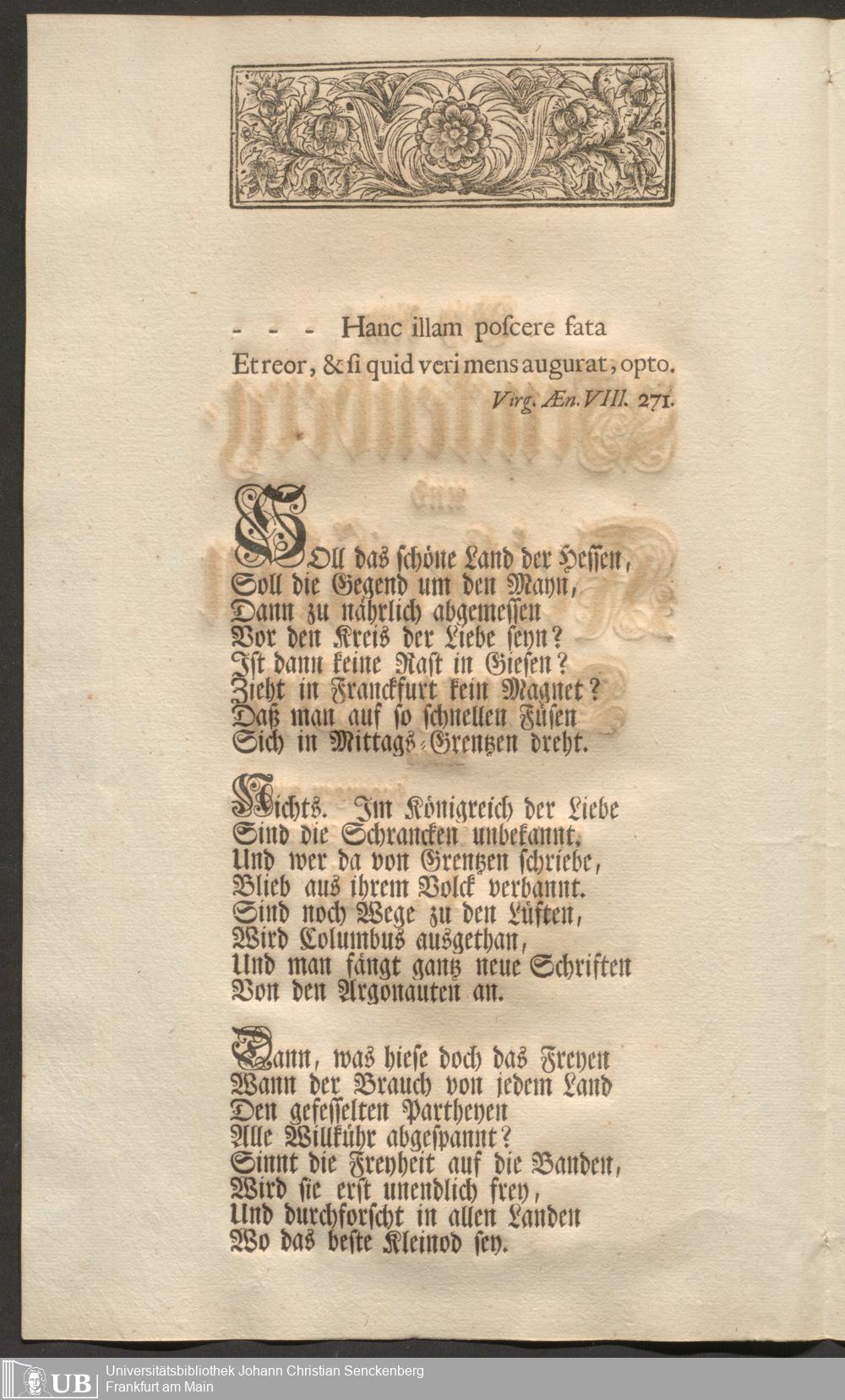 Na 31 Nachlass Johann Christian Senckenberg, 103 - Glückwunsch-Druckschrift zum Senckenberg und Kröberschen Trauungsfest