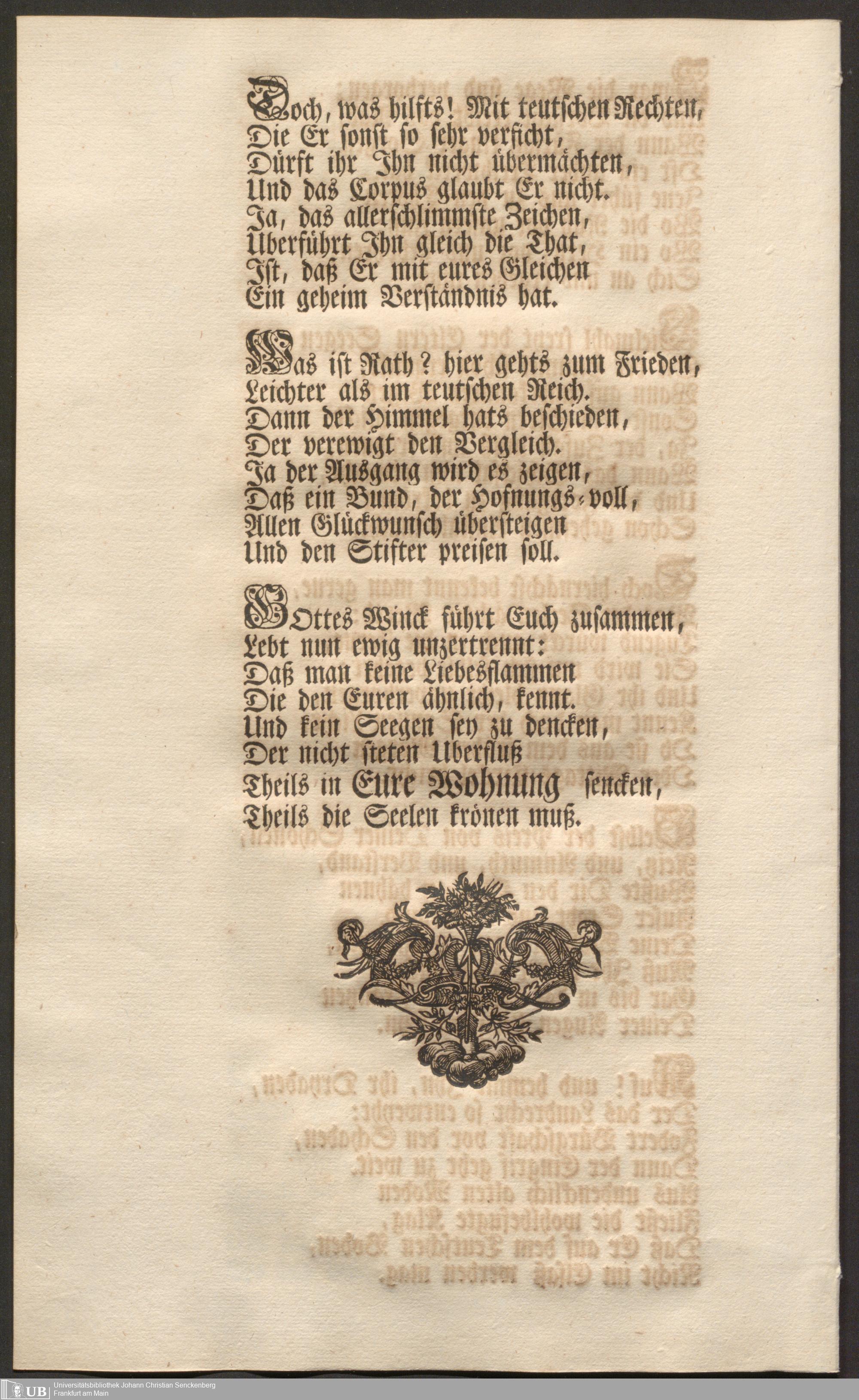 Na 31 Nachlass Johann Christian Senckenberg, 103 - Glückwunsch-Druckschrift zum Senckenberg und Kröberschen Trauungsfest