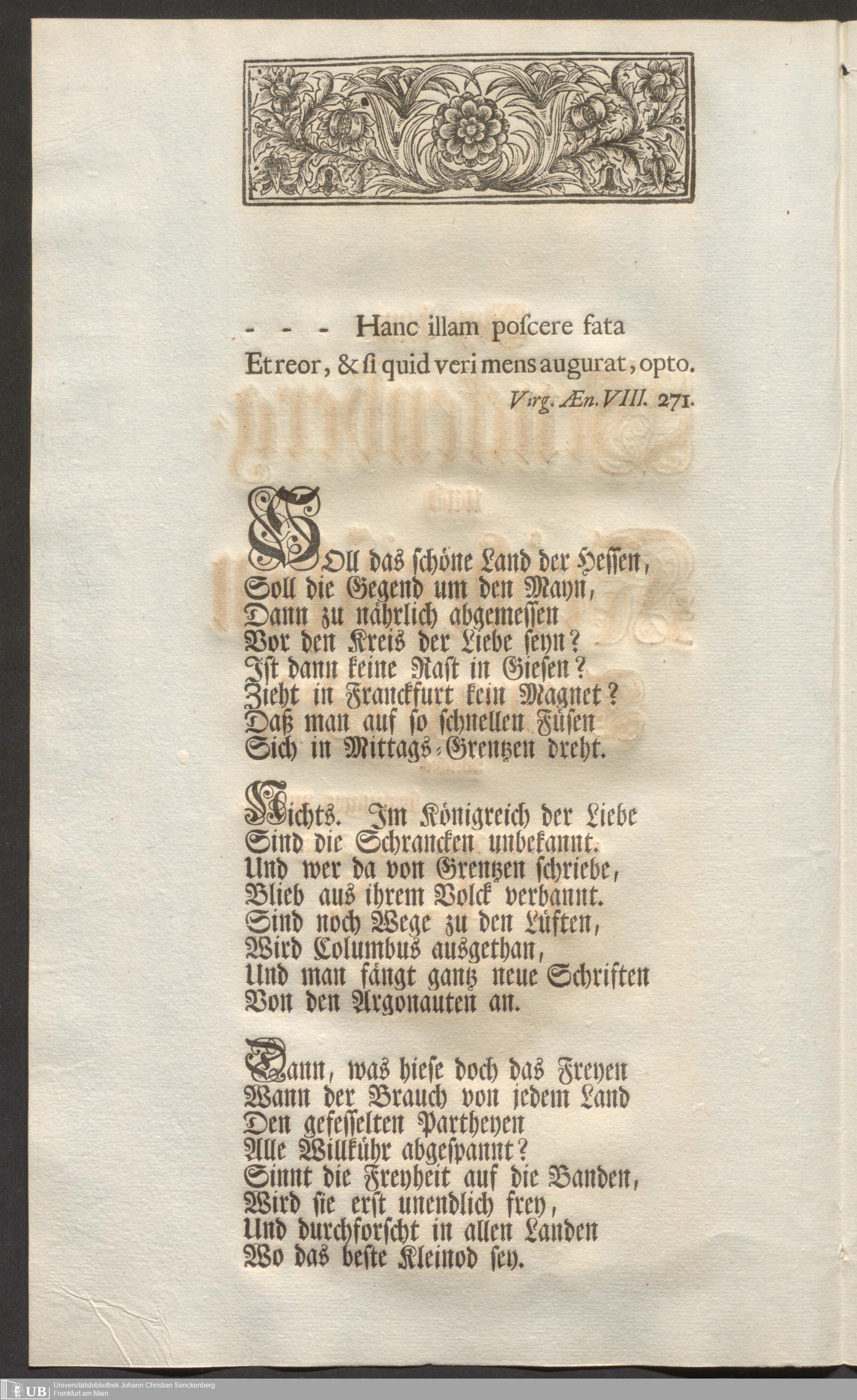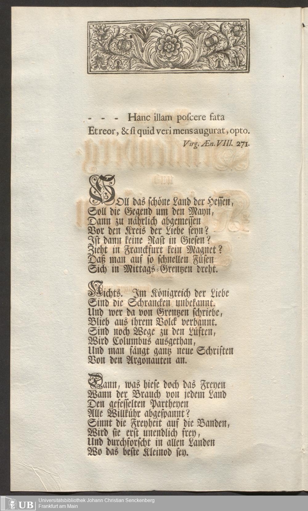 Na 31 Nachlass Johann Christian Senckenberg, 103 - Glückwunsch-Druckschrift zum Senckenberg und Kröberschen Trauungsfest