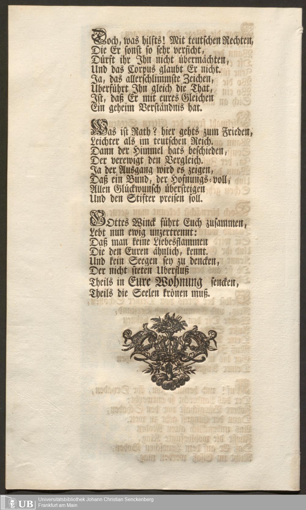 Na 31 Nachlass Johann Christian Senckenberg, 103 - Glückwunsch-Druckschrift zum Senckenberg und Kröberschen Trauungsfest