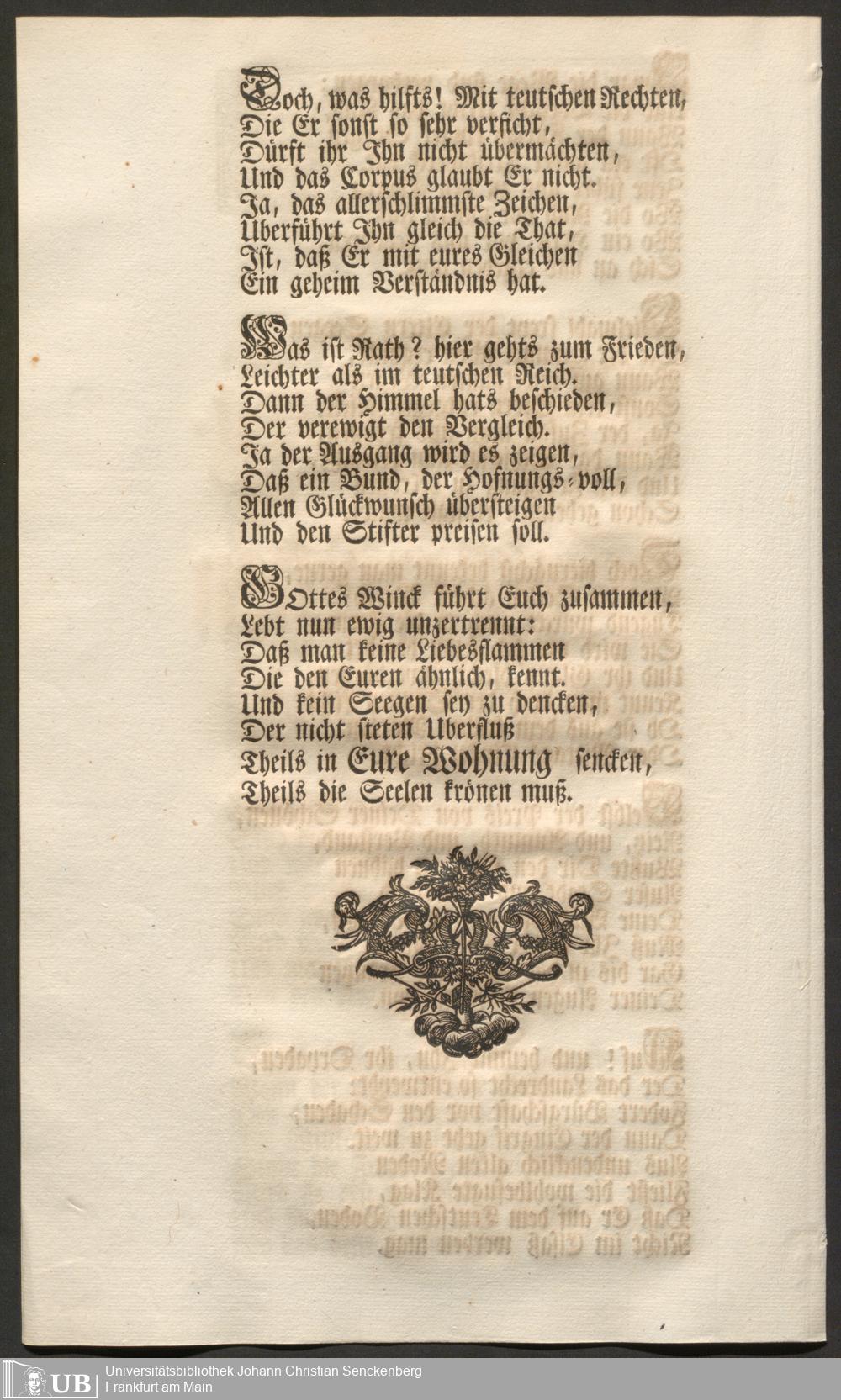Na 31 Nachlass Johann Christian Senckenberg, 103 - Glückwunsch-Druckschrift zum Senckenberg und Kröberschen Trauungsfest