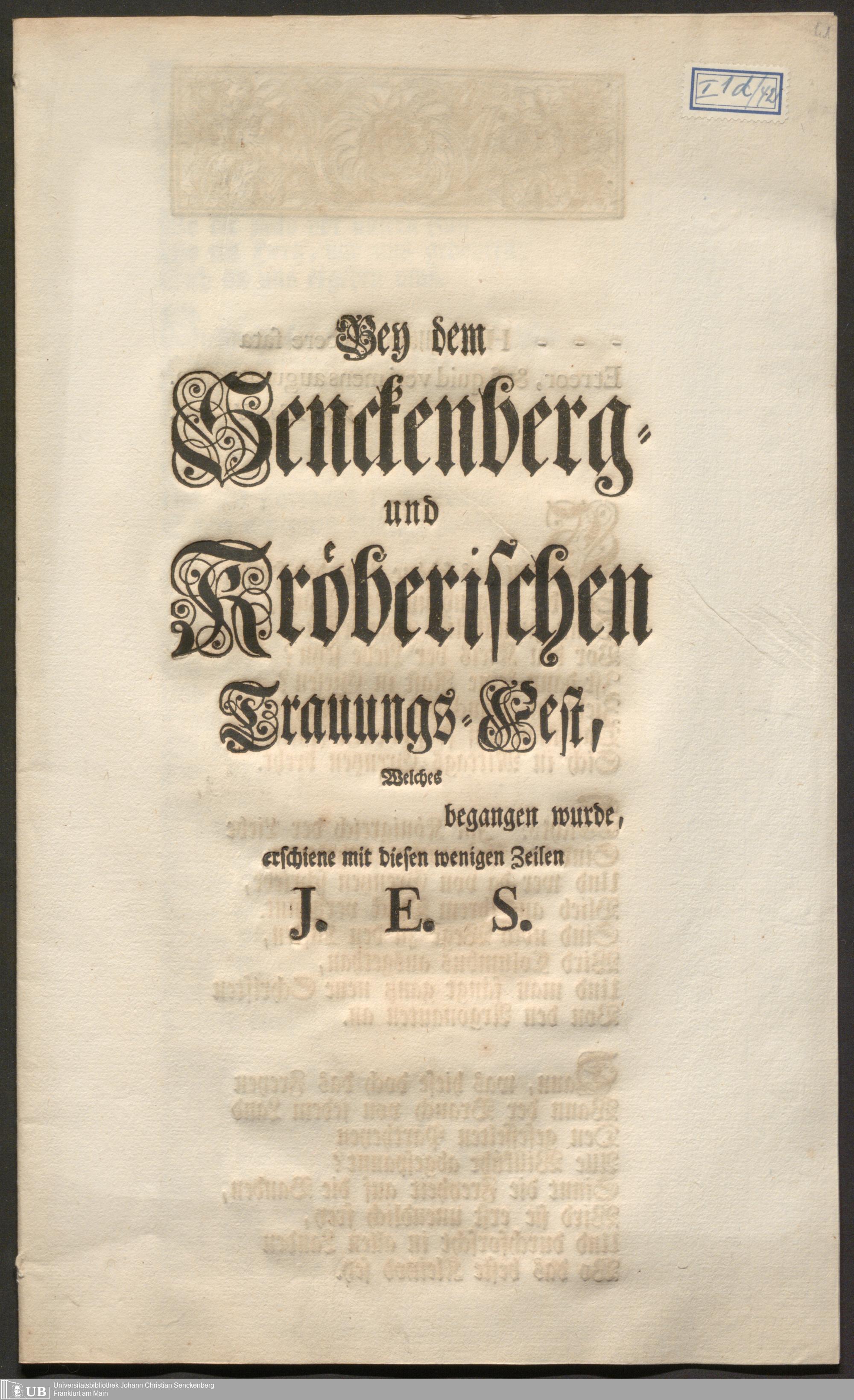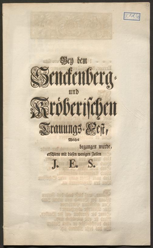 Na 31 Nachlass Johann Christian Senckenberg, 103 - Glückwunsch-Druckschrift zum Senckenberg und Kröberschen Trauungsfest