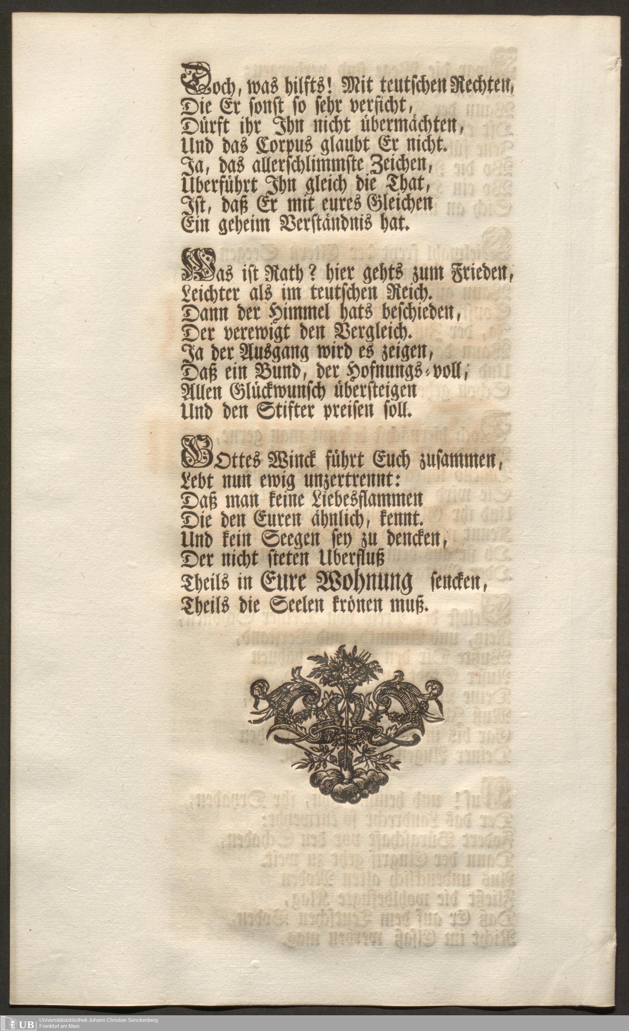 Na 31 Nachlass Johann Christian Senckenberg, 103 - Glückwunsch-Druckschrift zum Senckenberg und Kröberschen Trauungsfest