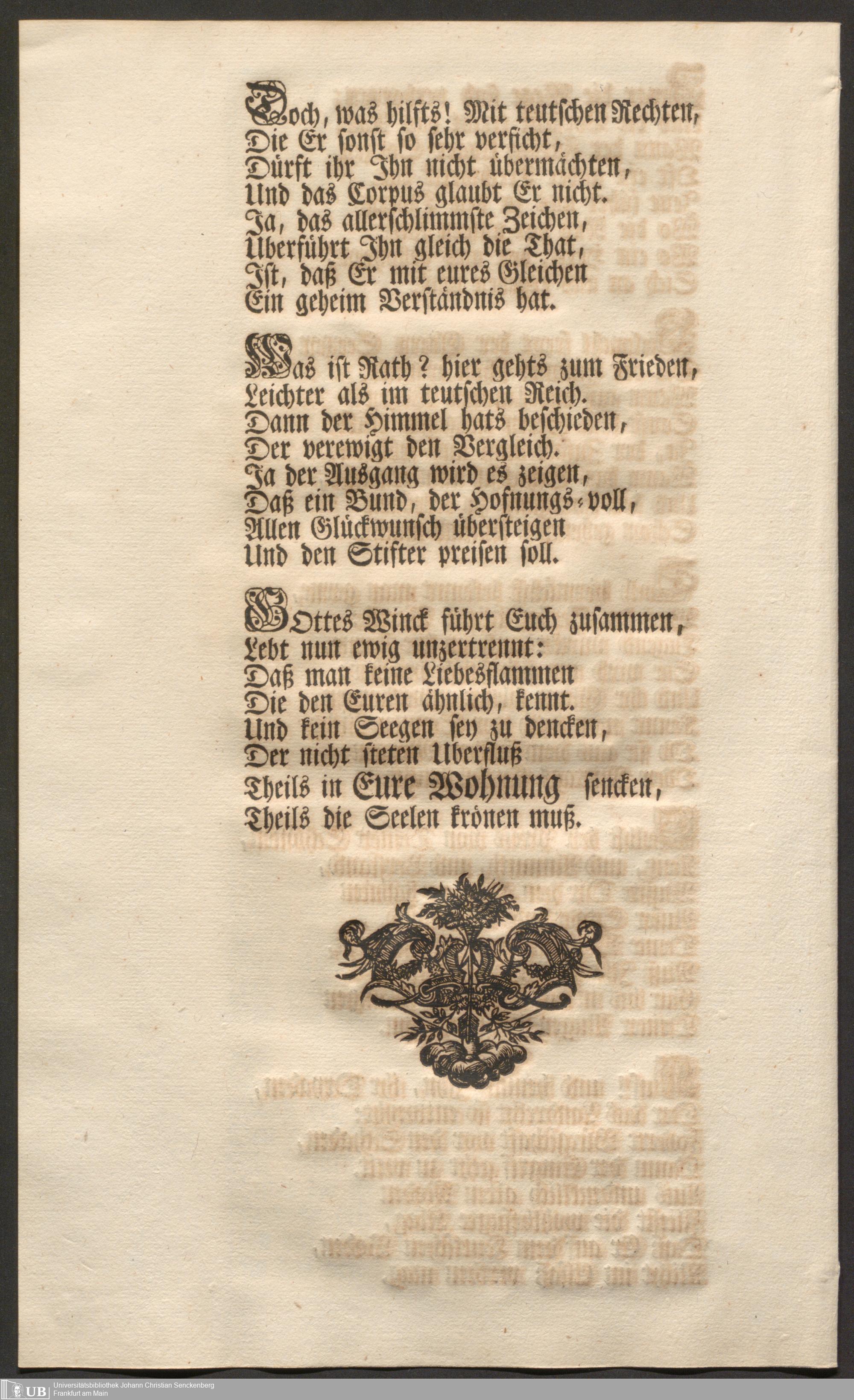 Na 31 Nachlass Johann Christian Senckenberg, 103 - Glückwunsch-Druckschrift zum Senckenberg und Kröberschen Trauungsfest