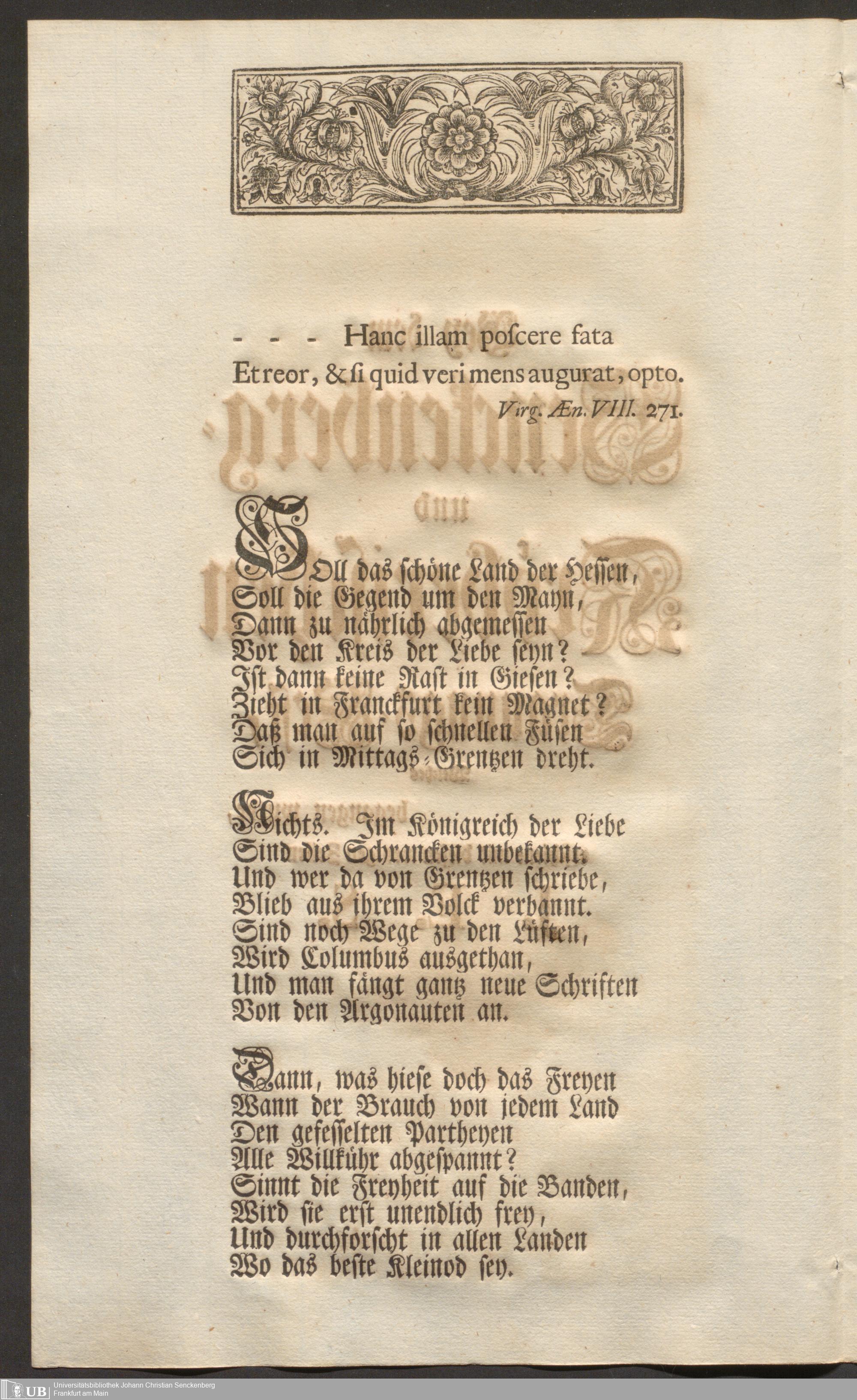 Na 31 Nachlass Johann Christian Senckenberg, 103 - Glückwunsch-Druckschrift zum Senckenberg und Kröberschen Trauungsfest