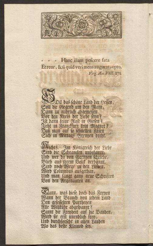 Na 31 Nachlass Johann Christian Senckenberg, 103 - Glückwunsch-Druckschrift zum Senckenberg und Kröberschen Trauungsfest