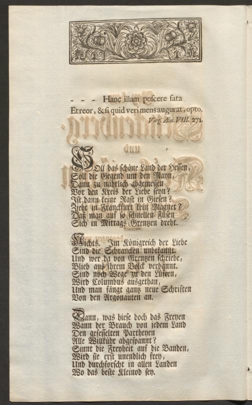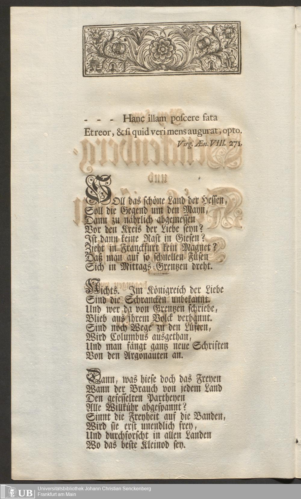 Na 31 Nachlass Johann Christian Senckenberg, 103 - Glückwunsch-Druckschrift zum Senckenberg und Kröberschen Trauungsfest