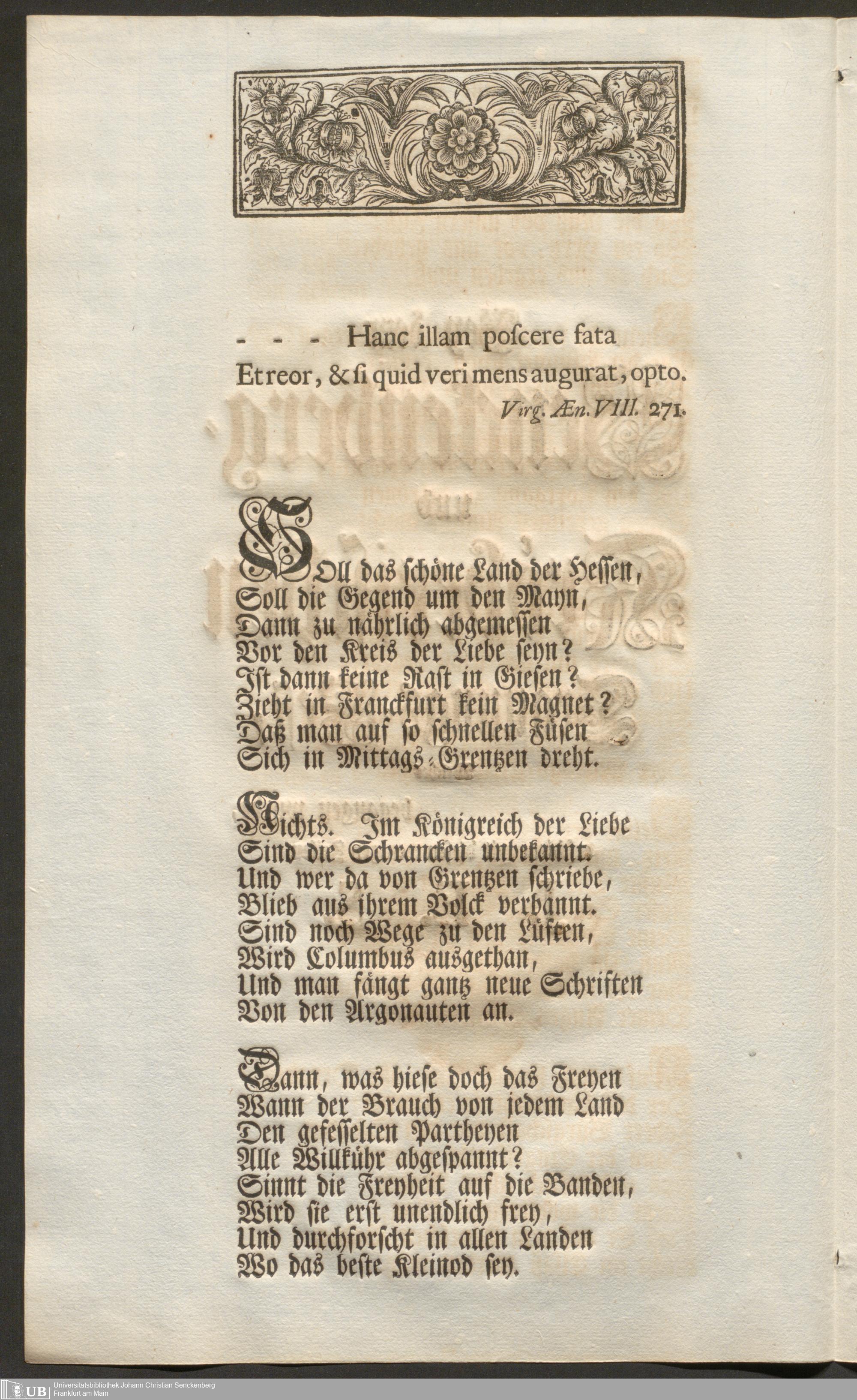Na 31 Nachlass Johann Christian Senckenberg, 103 - Glückwunsch-Druckschrift zum Senckenberg und Kröberschen Trauungsfest