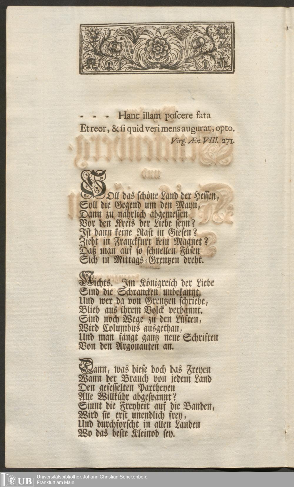 Na 31 Nachlass Johann Christian Senckenberg, 103 - Glückwunsch-Druckschrift zum Senckenberg und Kröberschen Trauungsfest