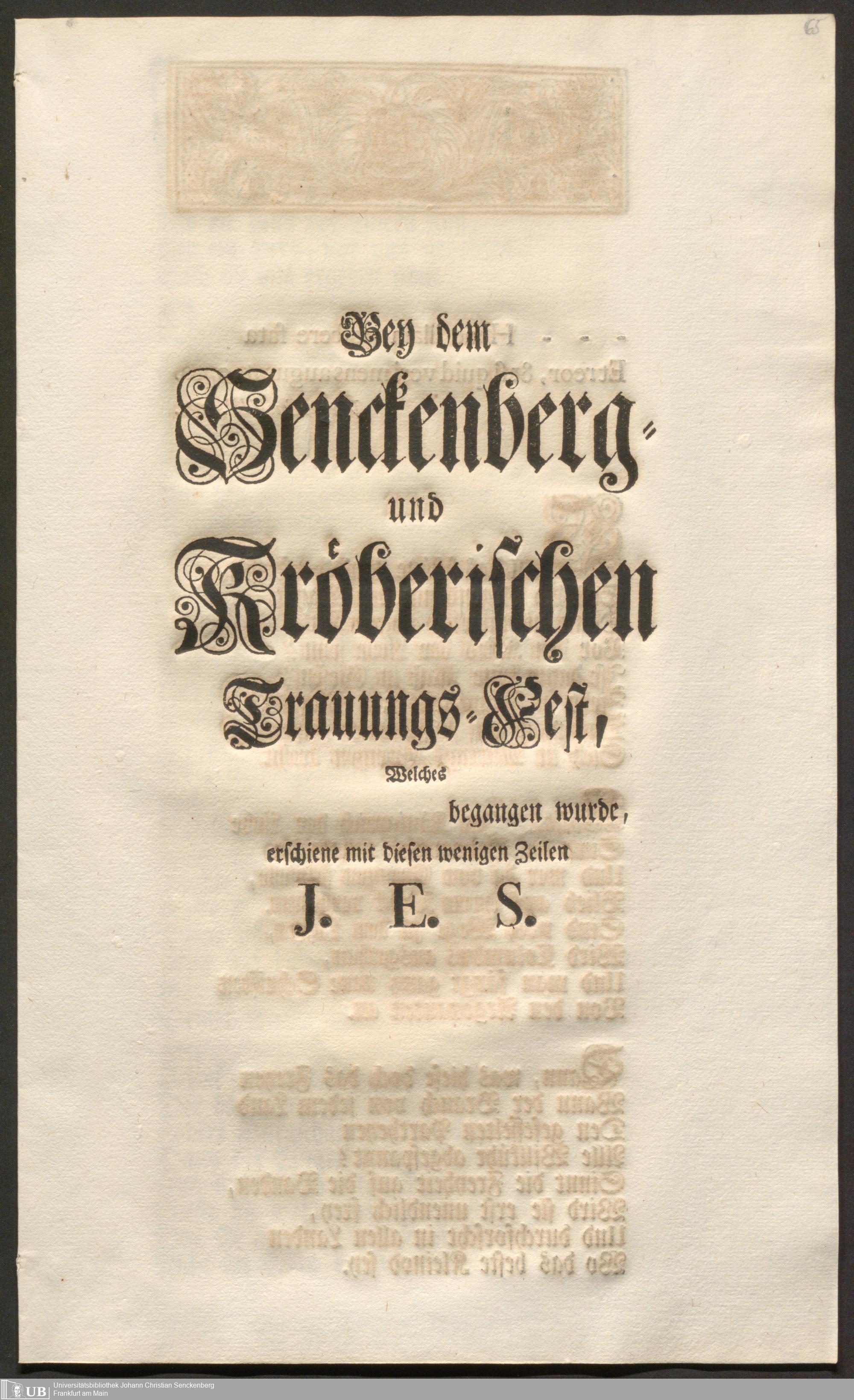 Na 31 Nachlass Johann Christian Senckenberg, 103 - Glückwunsch-Druckschrift zum Senckenberg und Kröberschen Trauungsfest