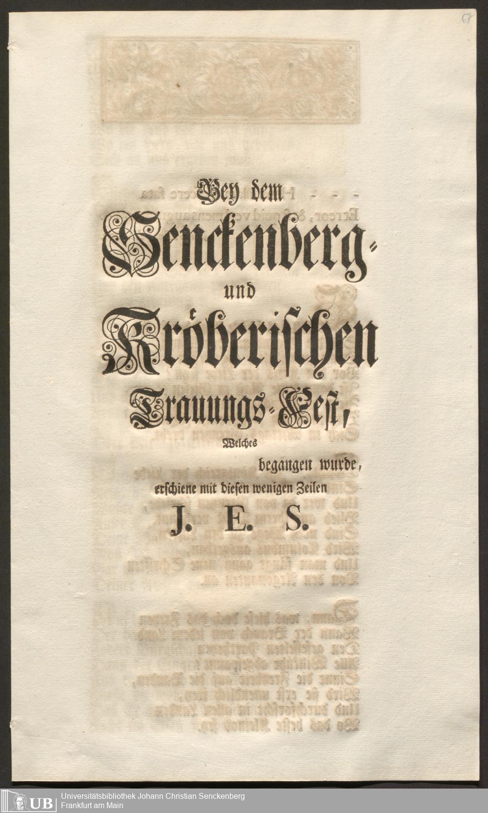 Na 31 Nachlass Johann Christian Senckenberg, 103 - Glückwunsch-Druckschrift zum Senckenberg und Kröberschen Trauungsfest