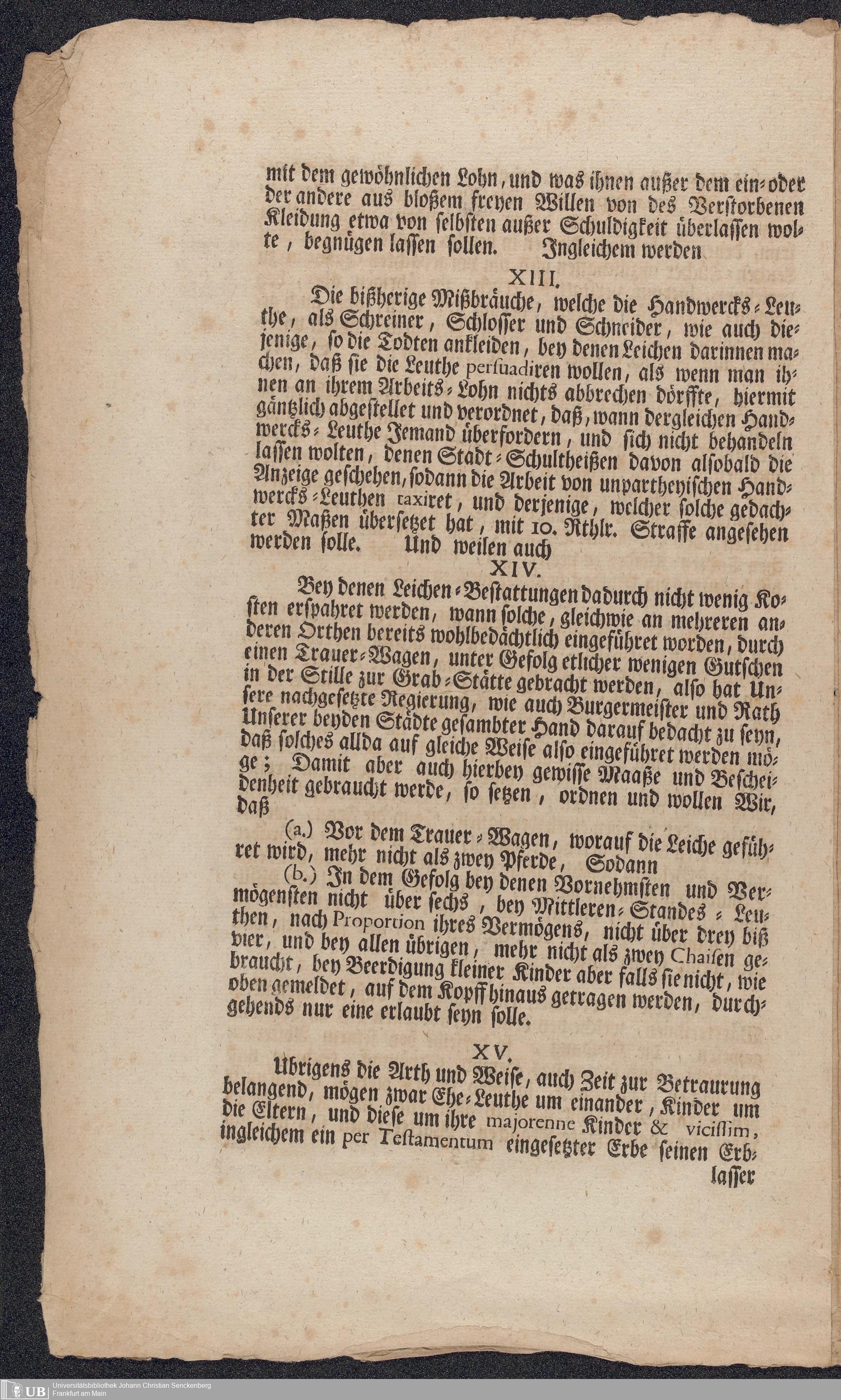 Na 31 Nachlass Johann Christian Senckenberg, 107 - Aufzeichnungen und Bestimmungen Senckenbergs zu seiner Grabstätte und deren Inschriften